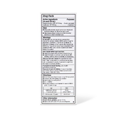 Get an easy remedy for cold, cough or flu with the Tussin Cough Chest Congestion DM Max Treatment from up & up™. This maximum-strength liquid treatment works to relieve cough and mucus, and has a non-drowsy effect so you don't have to think twice when taking it during working hours. With an alcohol-free raspberry menthol flavor, this cough and chest congestion treatment is recommended for ages 12 and up.