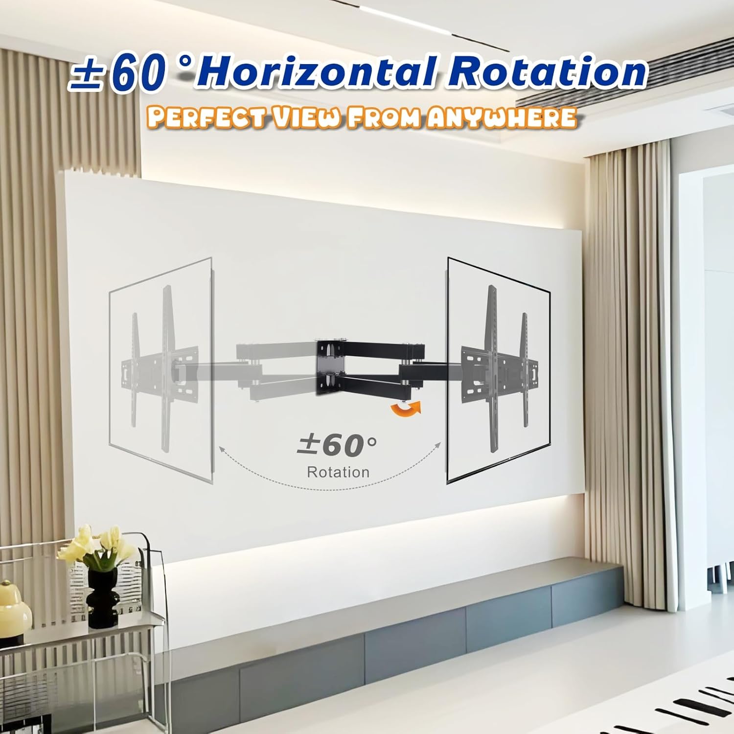 Comfortable Viewing Experience: This full motion TV wall mount with /-15°tilt to reduce glare; Swivel TV mount with /-60°swivel(maximum swivel angle depends on your TV screen size) for a more immersive viewing experience from multiple angles.