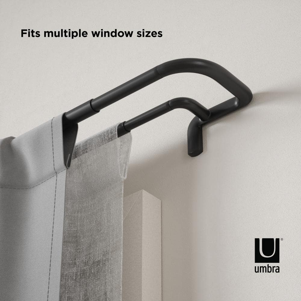 Twilight 60 in. -144 in. Adjustable Double 1 in. Curtain Rod, Black, Room Darkening