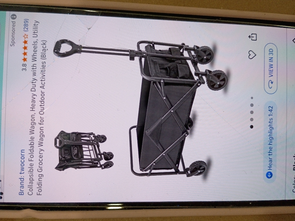 Twocorn Collapsible Foldable Wagon, Utility Folding Grocery Wagon for Outdoor Activities (Black)