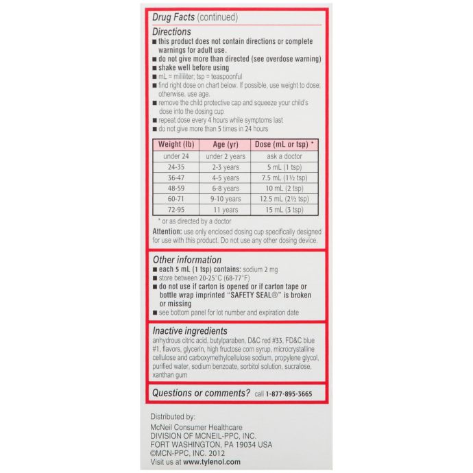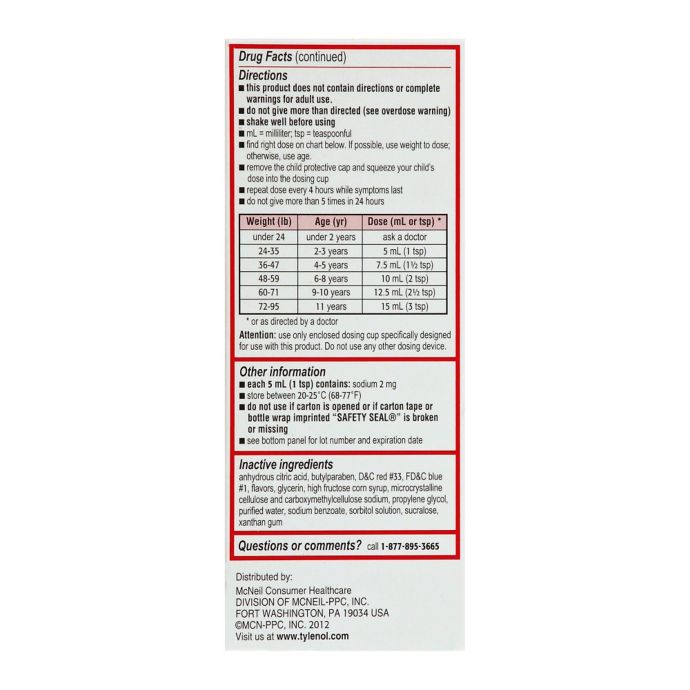 Tylenol Children's Pain/Fever Reducer Oral Suspension Liquid is ibuprofen, alcohol and aspirin free. Works to relieve minor aches and pains and temporarily reduces fever.