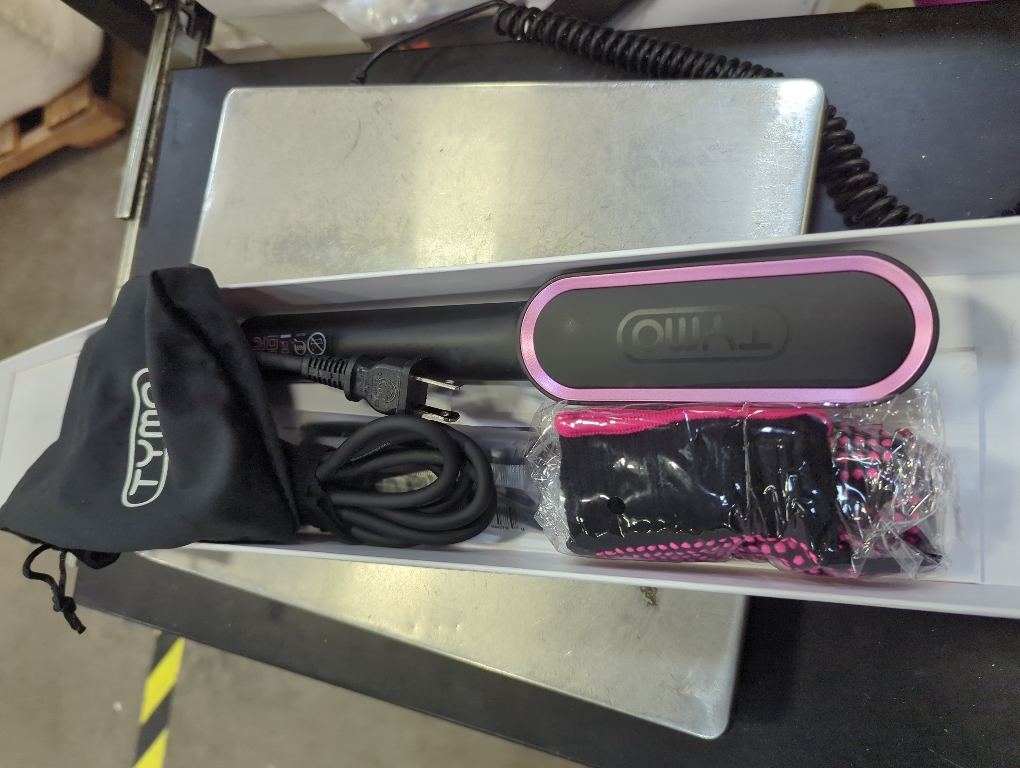 What it DoesGet salon-grade hair with TYMO RING, the ultimate in effortless hair straightening and styling. Experience the revolution in hair styling with the TYMO RING Straightener Comb - your new secret weapon for stunningly straight hair. It uniquely combines the power of a flat iron with the simplicity of a comb to provide volume and shine, simply by combing through each section of hair. The TYMO RING features five temperature options for different hair types, ranging from 266 -410 and heats up quickly in just 60 seconds. With 25 ceramic heating plates, straightening becomes not just effortless, but a delight. Enhanced safety features include the anti-scald design to protect scalp and hands, while allowing you to reach closer to the roots for greater volume, and a 30-minute auto shut off. Get ready to dazzle with your sleek, runway-ready hair. Step into the future of hair styling with the TYMO RING!How to Use A.Operating steps of straight hair(1) Wash and dry your hair, comb your hair thoroughly (do not use any spray, styling agent or other inflammable chemical hair-care products), then wrap a towel around your neck so as to avoid possible skin scalding.(2) Insert the plug into power socket, press power key to start the appliance, then the appliance will work at level 4 (defaulted).(3) Press or - to choose levels according to different hair types.(4) while heating, the LED of corresponding level will be on. After heating to set temperature, LED will be lit long.(5) After the LED for level setting is lit, hold the handle of the appliance and take care of the safety distance between the appliance and skin and eyes.(6) Split the hair into strands evenly, grasp and take up, put the prepared hair strand into comb teeth starting from the hair root.(7) Slide from the hair root downward to the end of hair smoothly. Repeat the above actions till you obtain the straight hair you desire.(8) After straightening the hair, press the Power key again to turn off the appliance. After the straightened hair is ready, arrange the hair with comb properly.B.Operating steps of curly hair(1) For outward curling-up styling, it is necessary to perform the steps 1-6 for straight hair, grasp the hair and curl up outwards around comb, stay at the end of hair for 3-5 seconds and repeat for 3 times.(2) For inward curling-up styling, it is necessary to perform the steps 1-6 for straight hair, grasp the hair and curl up inwards around comb, stay at the end of hair for 3-5 seconds and repeat for 3 times.(3) After finishing the styling, press Power key again for turning off the appliance. When the finished hair is cooled down, arrange the hair with comb.Features1.Patented 3D heating teeth help straighten from the root of the hair for greater volume2.Five temperature options for different hair types (266 -410 )3.PTC heating technology delivers even heat, reducing heat damage4.Fast 60 second heat up5.Innovative anti-scald design to protect scalp and hands6.30-minute auto-off7.360 swivel power cord8.Accessories include a carrying bag, heat resistant glove, detangling brush, and two hair clips# of Heat Settings: 5Voltage (volts): 110vWattage (watts): 45wCord Length (ft.): 6 FtMaximum Temp (f): 410 Degrees FBase Material: 100% CeramicBrush Comb Type: Detangling CombsCountry of Origin: Made in US Keep out of reach of children and pets.