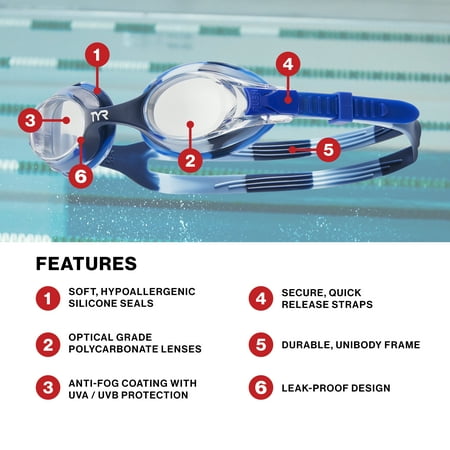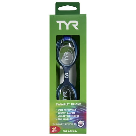 FOR KIDS: Designed for ages 3-10, TYR Swimple swim goggles will help start your child’s swim adventures off right with kid-safe performance features and a variety of fun tie-dye colors. COMFORT FIT: Constructed with unibody design that accommodates a variety of face shapes and durable, hypoallergenic Durafit silicone gaskets, the goggles provide a comfortable cushioning, close-to-the-eye fit, and a watertight seal. ADJUSTABLE: Great for growing athletes, TYR's easy-to-use Speed Adjustment feature's secure release button provides quick and easy strap adjustment. QUALITY LENS: Optical-grade, polycarbonate lenses offer anti-fog protection for better clarity underwater and UVA/UVB protection to protect eyes from the sun. SAFE AND RELIABLE: All TYR kids’ swim goggles have been tested and approved in accordance with the Consumer Product Safety Commission’s guidelines.