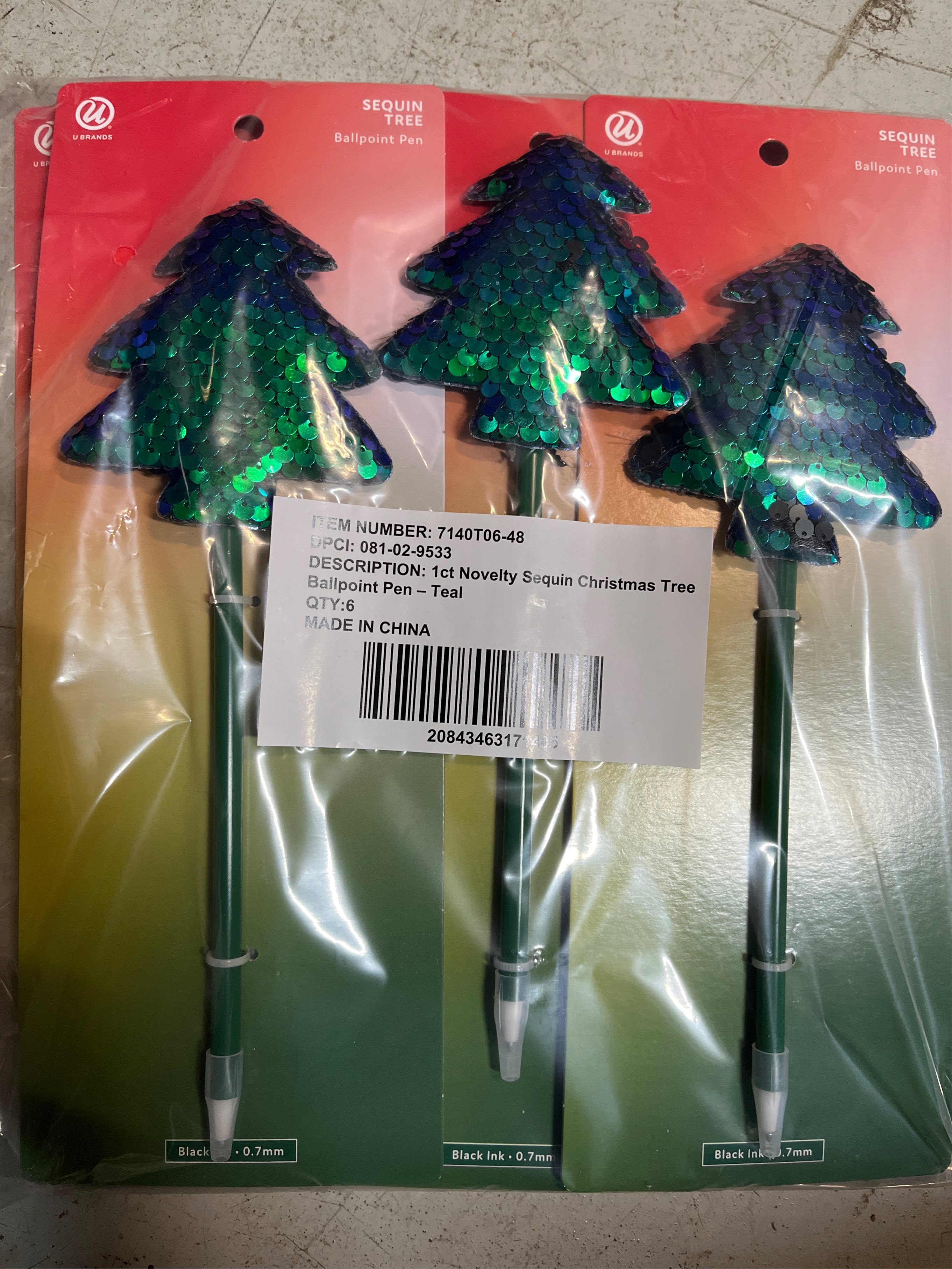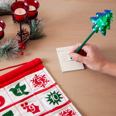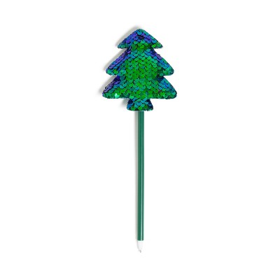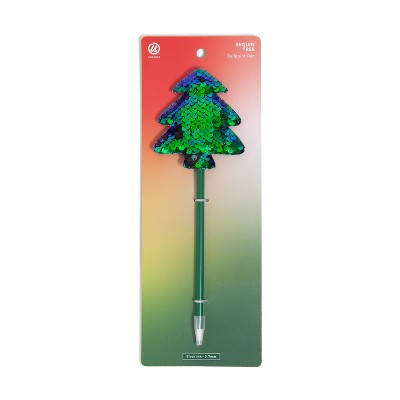 U Brands Novelty Christmas Tree Pen Teal Sequin: 0.7mm Black Ink Ballpoint, Non-Toxic Stationery Gift, 11.34" Length ( Set of 8)