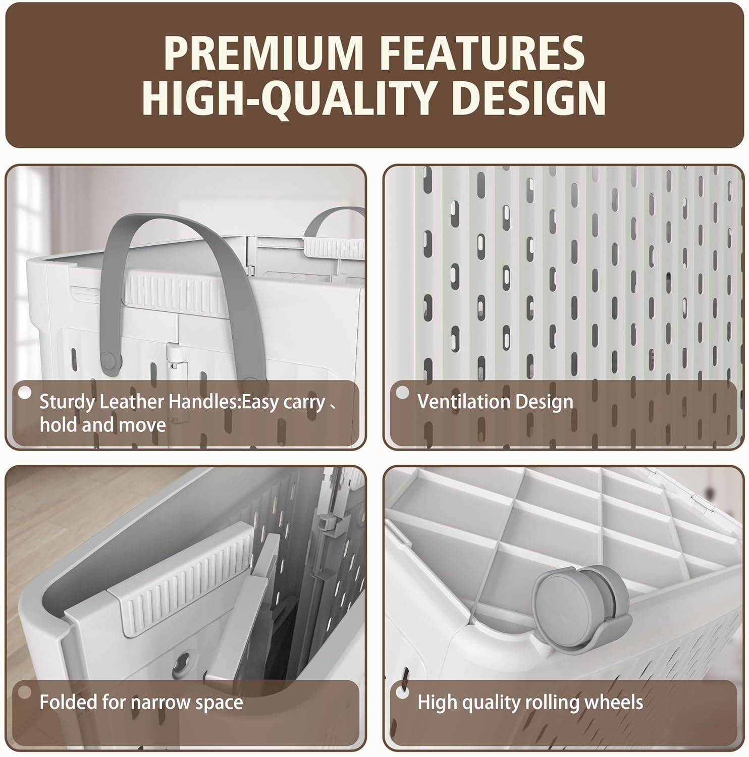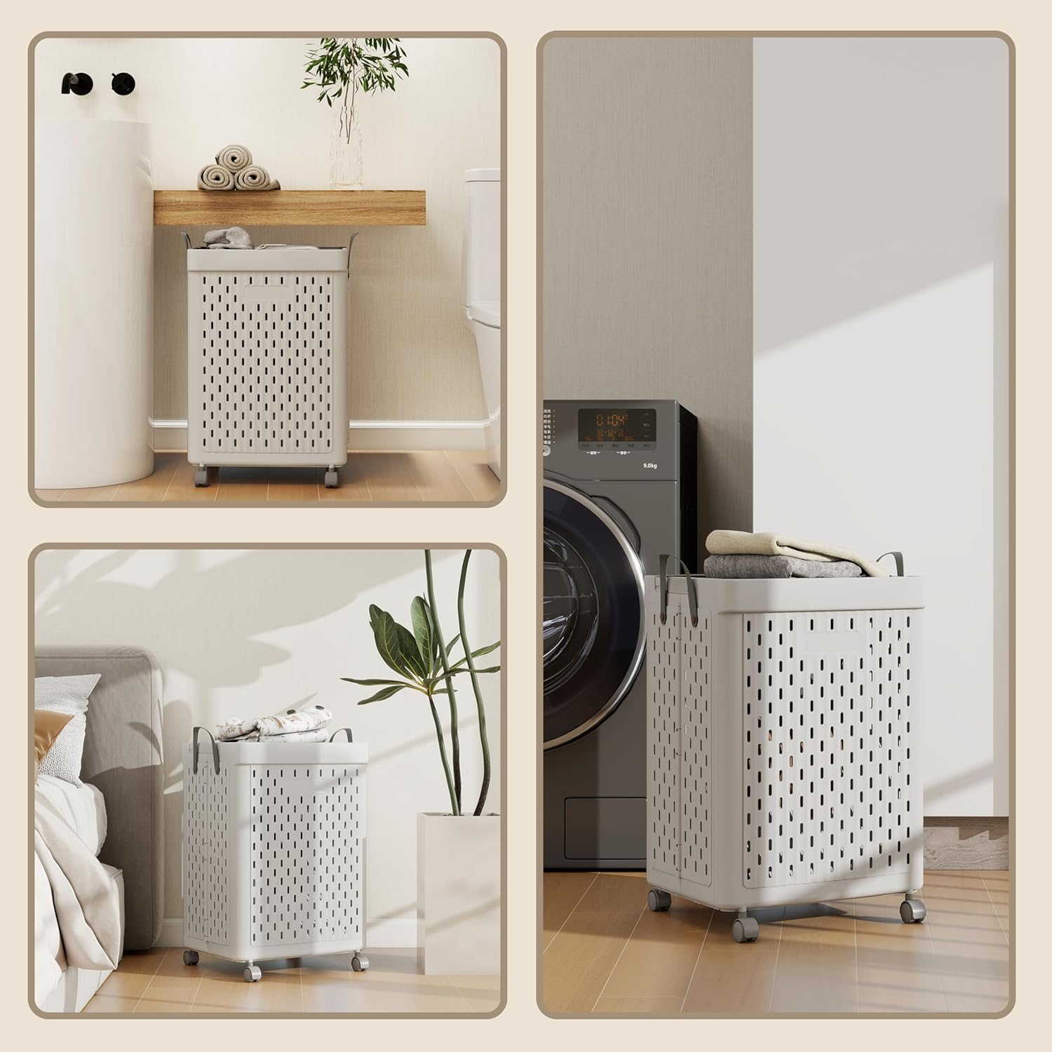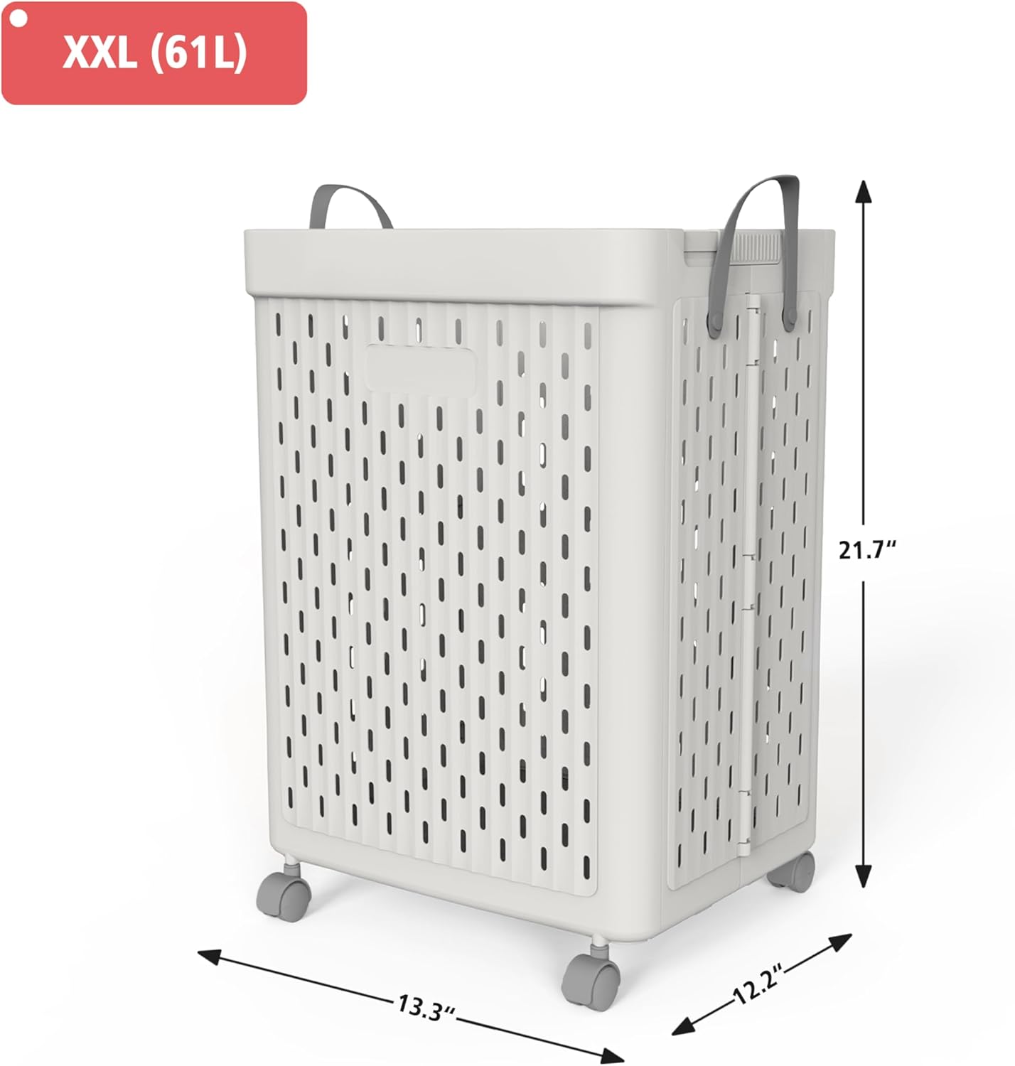 UAK Laundry Basket with Wheels, Collapsible Plastic Laundry Hamper with Handle, Foldable Laundry Basket Organizer for Laundry and Bathroom (Grey, XXL)
