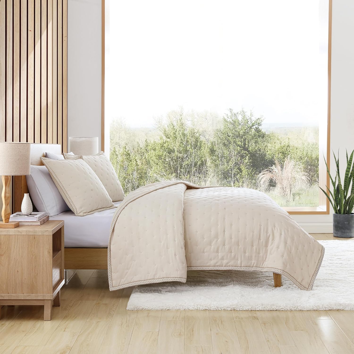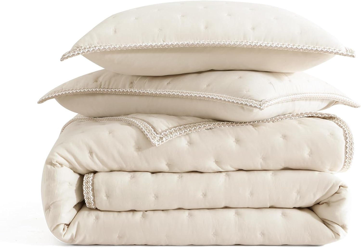 Complete Quilt Set for Full/Queen Beds: This set includes a generously sized 90" x 90" quilt along with two matching 20" x 28" shams, perfectly suited for Full or Queen beds. The coordinated design adds a polished, cohesive look to your bedroom, making it an easy and stylish bedding upgrade.