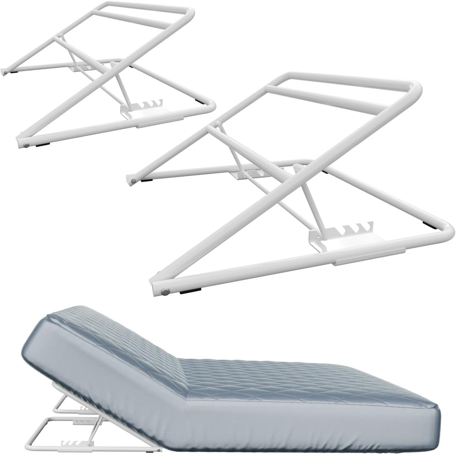 Under Mattress Wedge Lift - 2 Pack, 4-Level Adjustable Bed Risers for Seniors, Heavy-Duty Metal Frame Holds 200 Lbs, for Head Elevation & Sleep Support