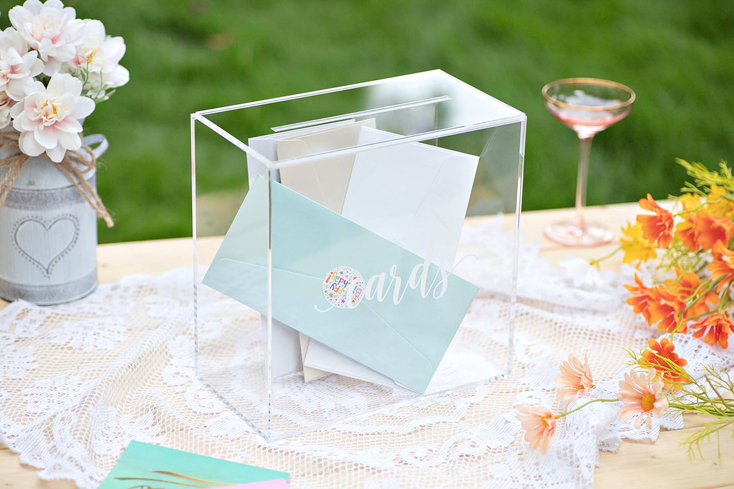 Elegant Wedding Card Box - The modern crystal clear acrylic wedding card box is not only a beautiful decoration to catch your guests attention but a great way to collect gift cards, cash, checks and small sized gifts.