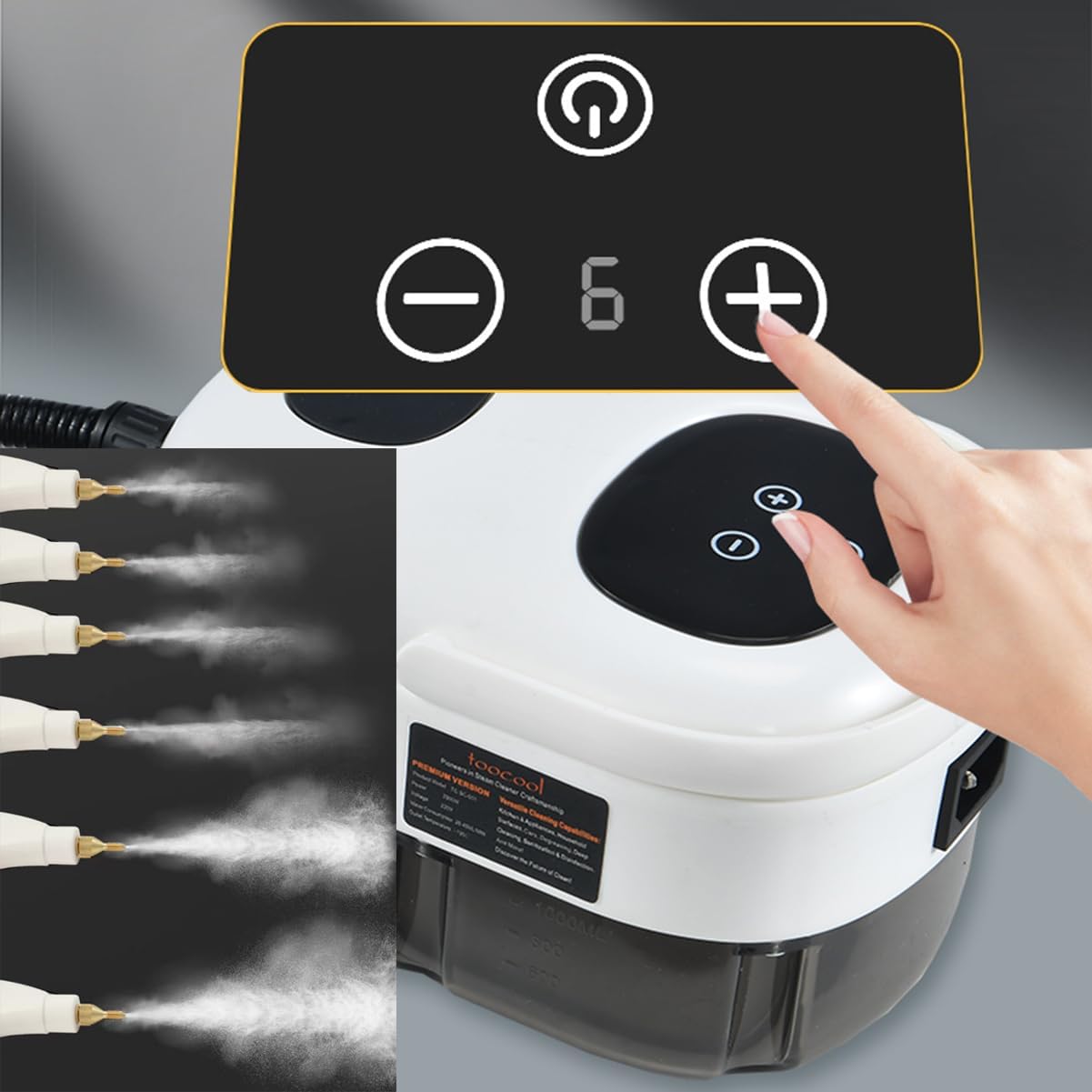 Smart Steam Control: Features a touch-adjustment button with 6 steam levels ( /-) for precise cleaning, displaying real-time settings for tailored steam intensity.