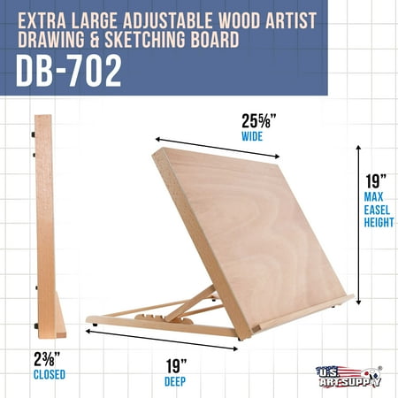 U.S. Art Supply X-Large 25-5/8" Wide x 19" Tall (A2) Artist Adjustable Wood Drawing Board