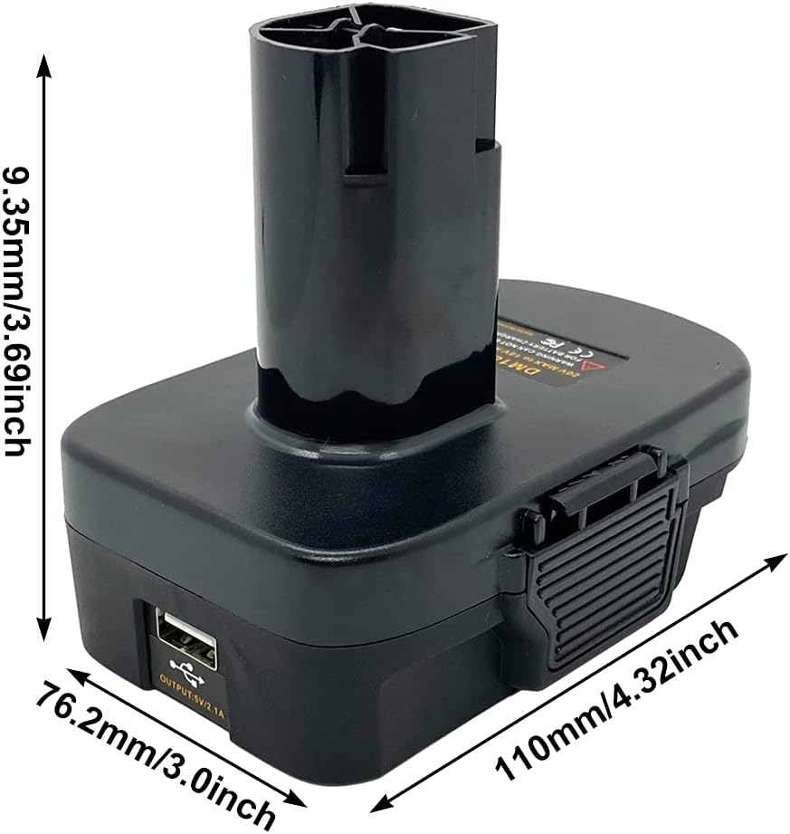 Sturdy with USB Port : Our cordless power tools adapter is made of PC ABS material, solid and reliable. Not 3D printing, Professional compact design and easy installation, longer service life. Small size and light weight, convenient to carry and store. Built-in 5V 2.1A (Max) USB charge circuit, when the mobile phone or other low-power digital devices are temporarily out of power, you can use it to replace the charge pal to charge. Size 4.32x3.0x3.69inch.