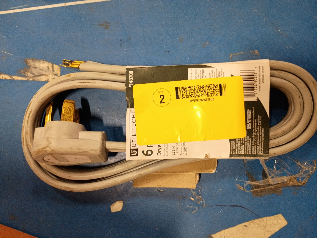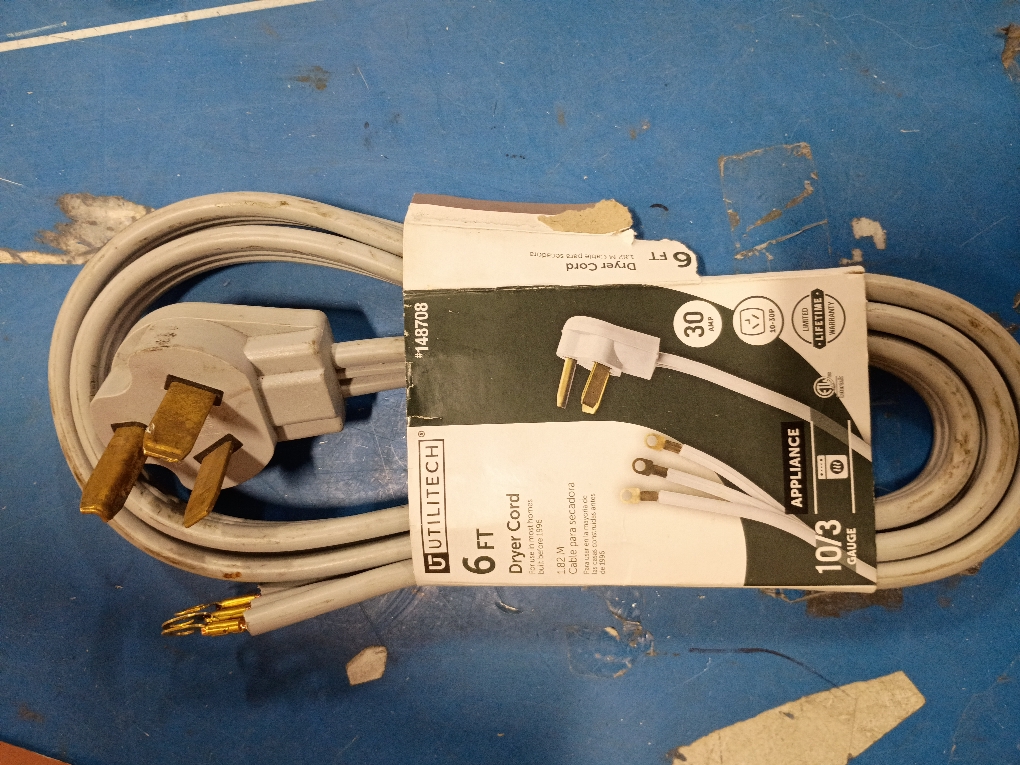 Appliance power cord 10/3 SRDT gray 3 wire dryer cord.