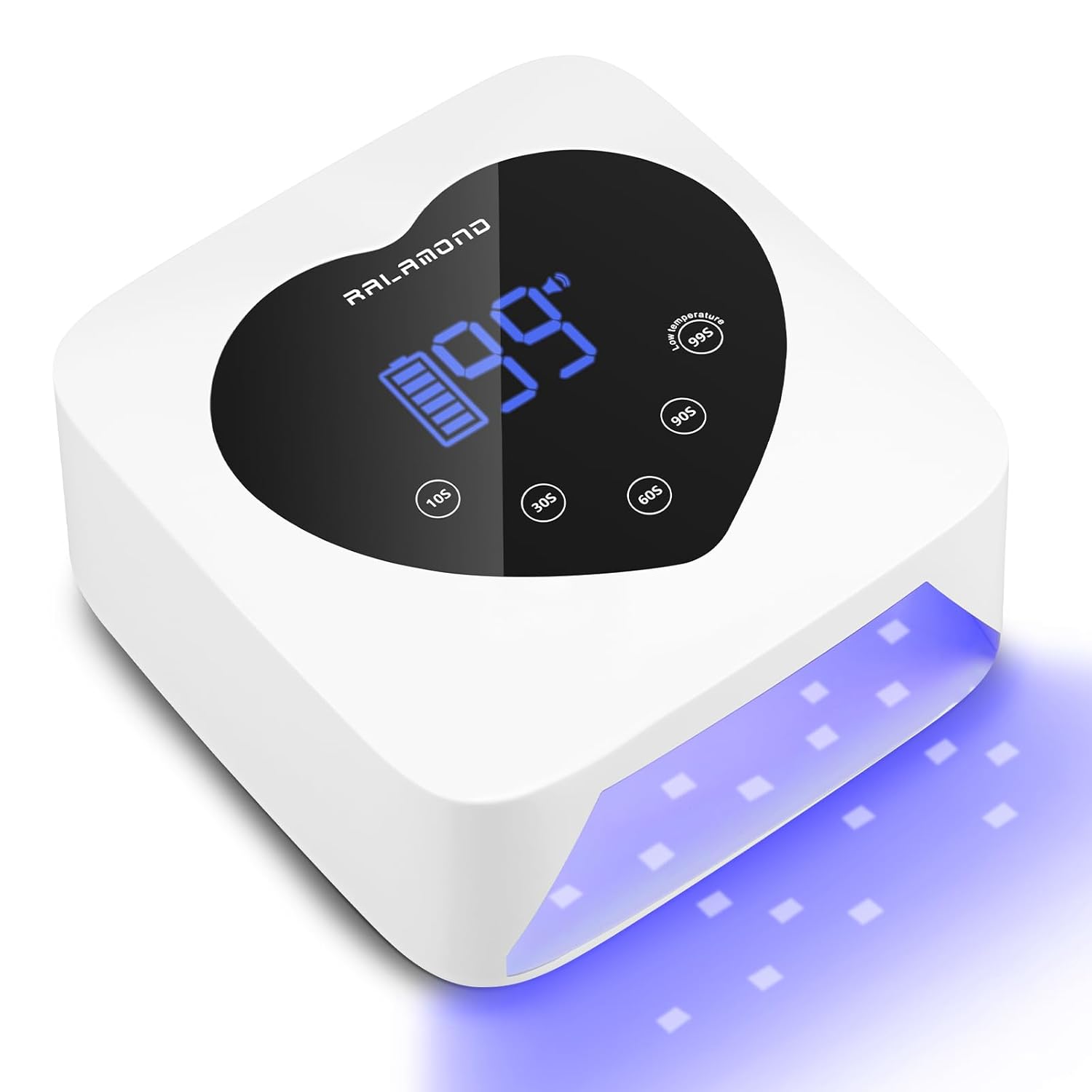 Featuring a cute heart-shaped Led screen, led nail light for gel nails can clearly show the curing time and battery status. Gel lamp uv led light is also equipped with 5 timers(10s, 30s, 60s, 90s, 99s low heat) to meet your different nail gel polish drying need with a simple touch.