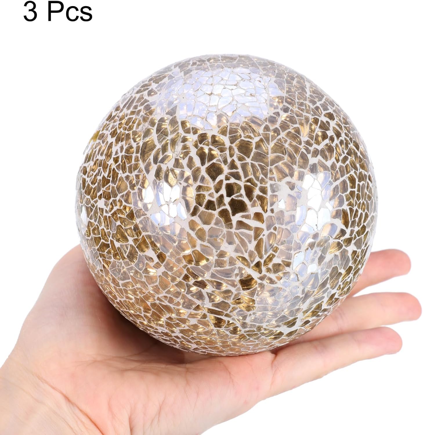 uxcell 4" Decorative Balls, 3 Pcs Mosaic Glass Balls, Decorative Table Sphere Orbs, Centerpiece Balls for Decorating Bowls Vase Tables Wedding Party, Gold