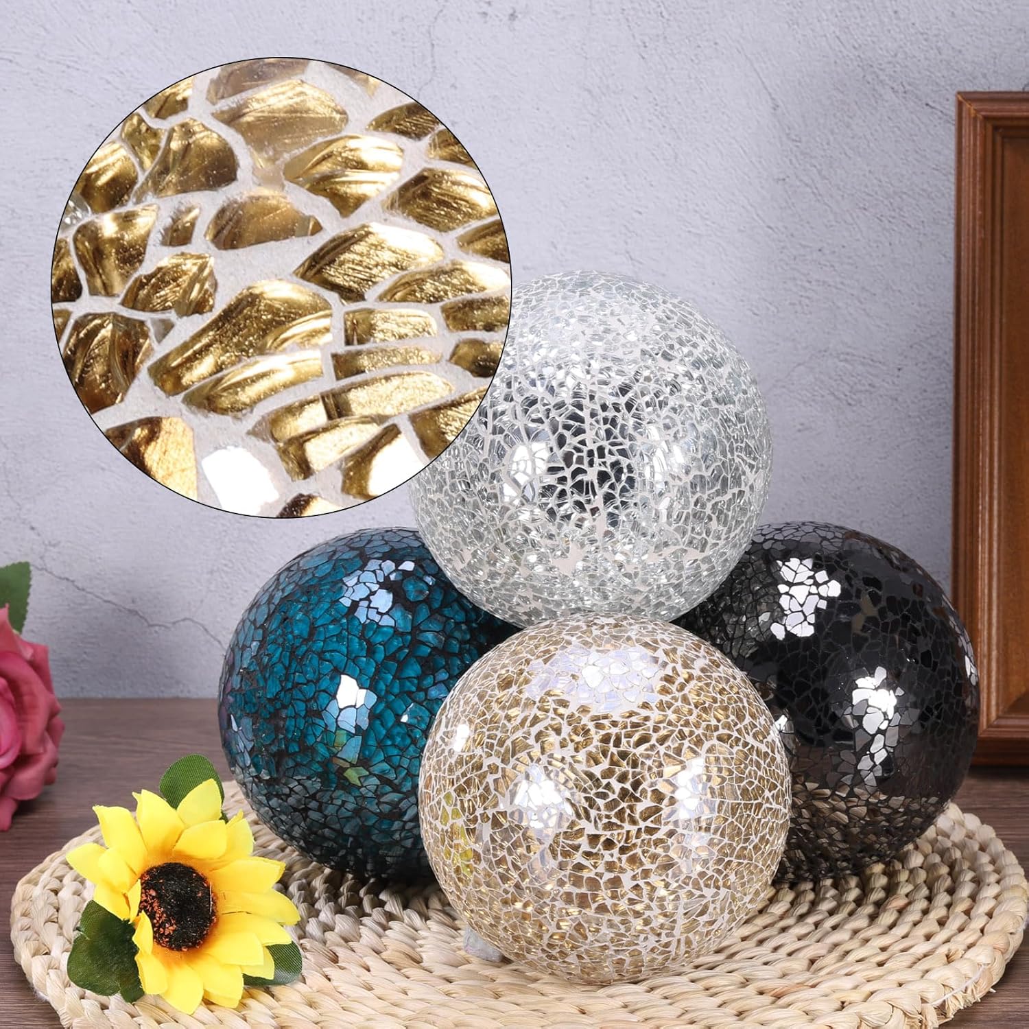 This product includes 3 Pcs Mosaic Sphere Balls Glass Decorative Orbs, Orb diameter of each is 10cm (4inch).