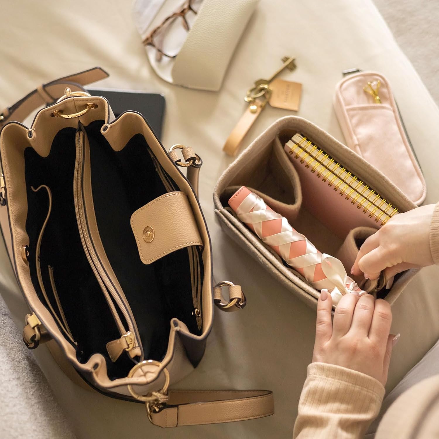 Reliable Zipper Design: This handbag organizer includes a separate zipper compartment, which offers a reliable closure mechanism to secure valuables and private items, making them easy to find and minimizing the risk of spilling or losing contents.