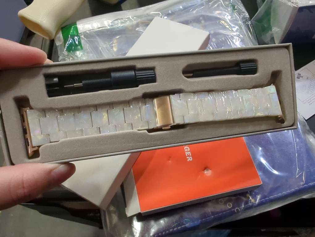 ????Stylish Colorful Design - This elegant Apple band 40mm features a milky white base with subtle colorful speckles that create a soft pearlescent effect. The resin surface catches light beautifully, showing delicate color reflections from different angles while maintaining its primarily creamy white appearance.