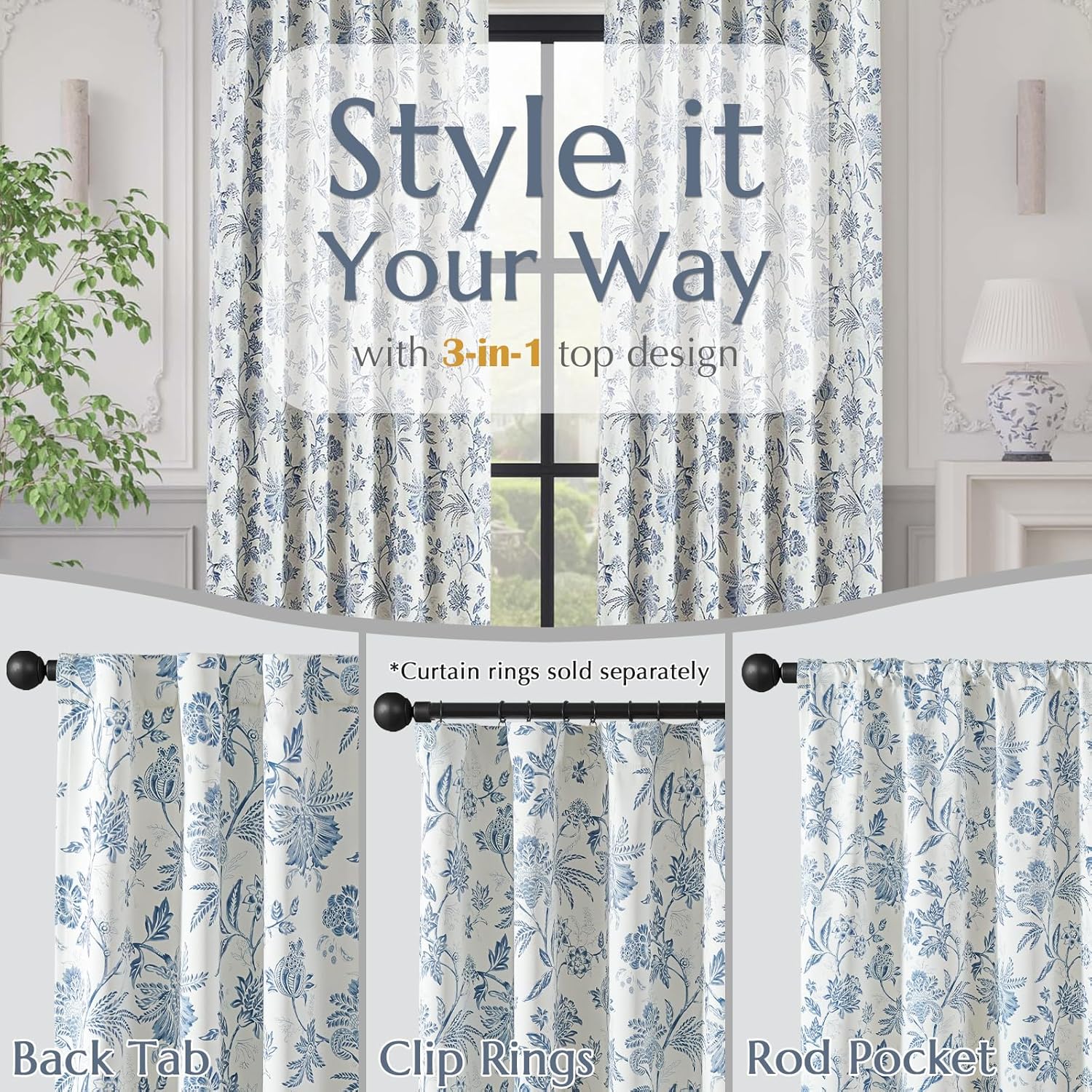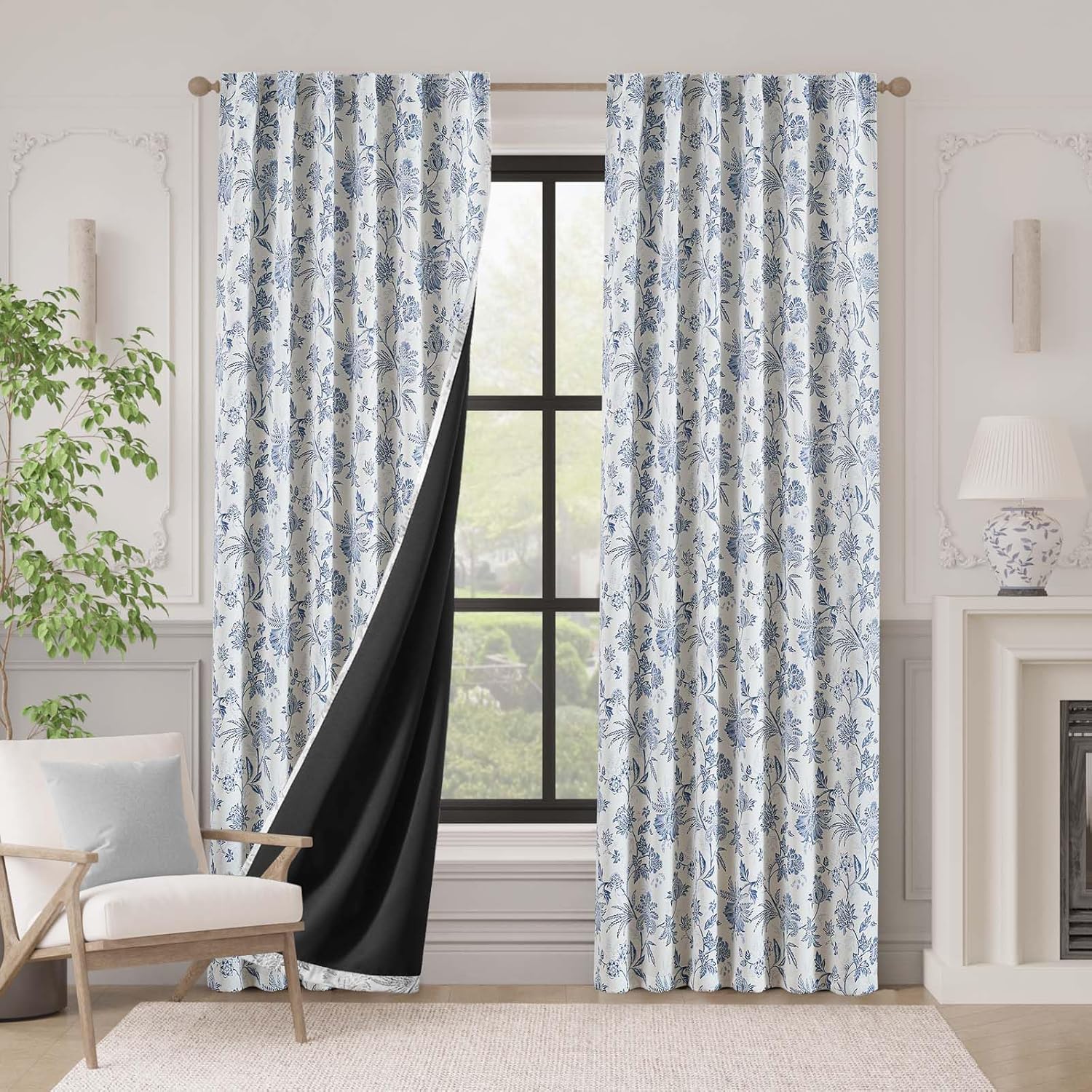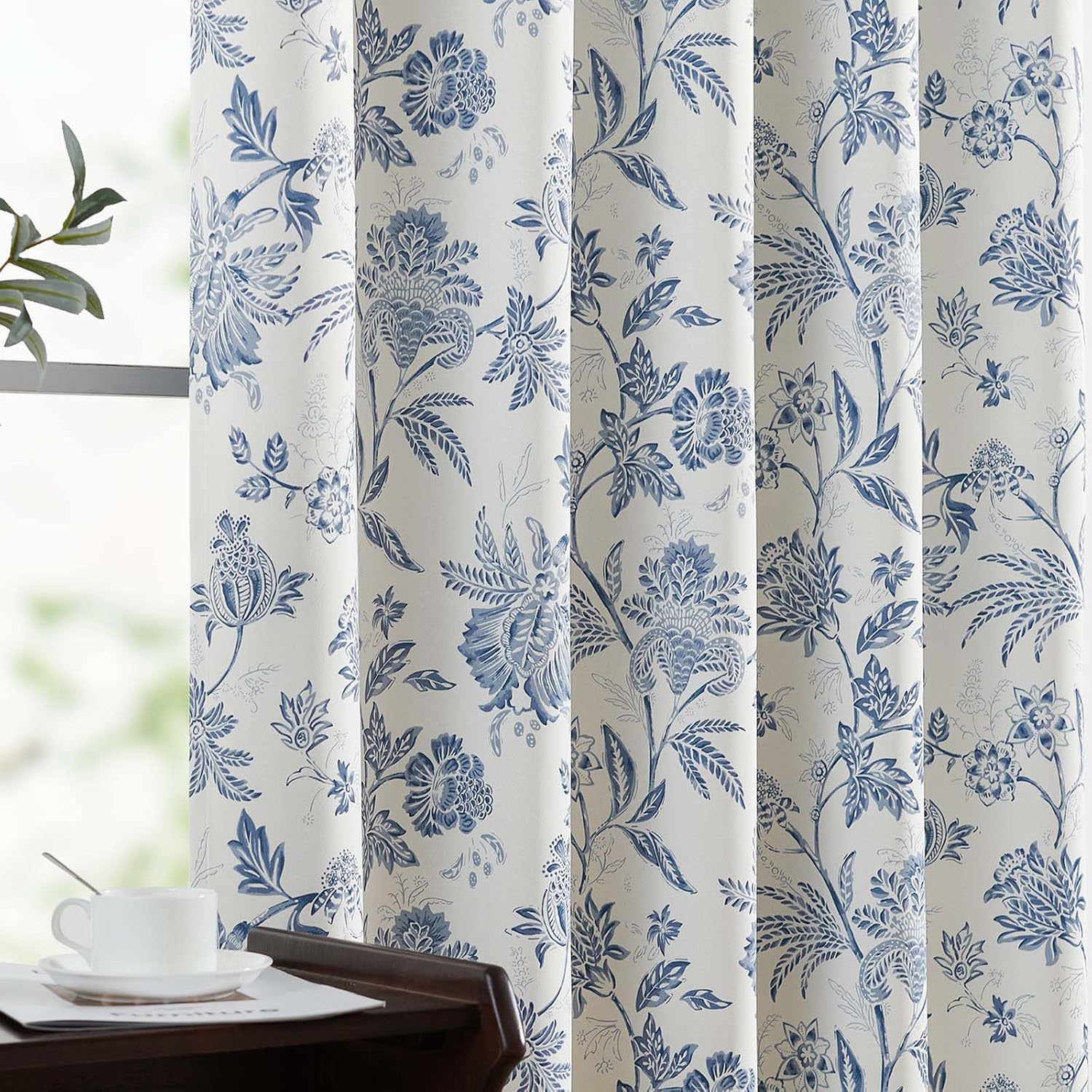 Effective Light Blocking: Made of supersoft yet robust fabric in blue, these floral print curtains feature a densly woven backing for effective light and heat control; They can block out bright sunlight, soften outside noise, and regulate the temperature, creating a dark, quiet and warm space for you to relax