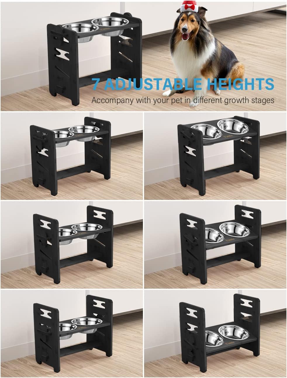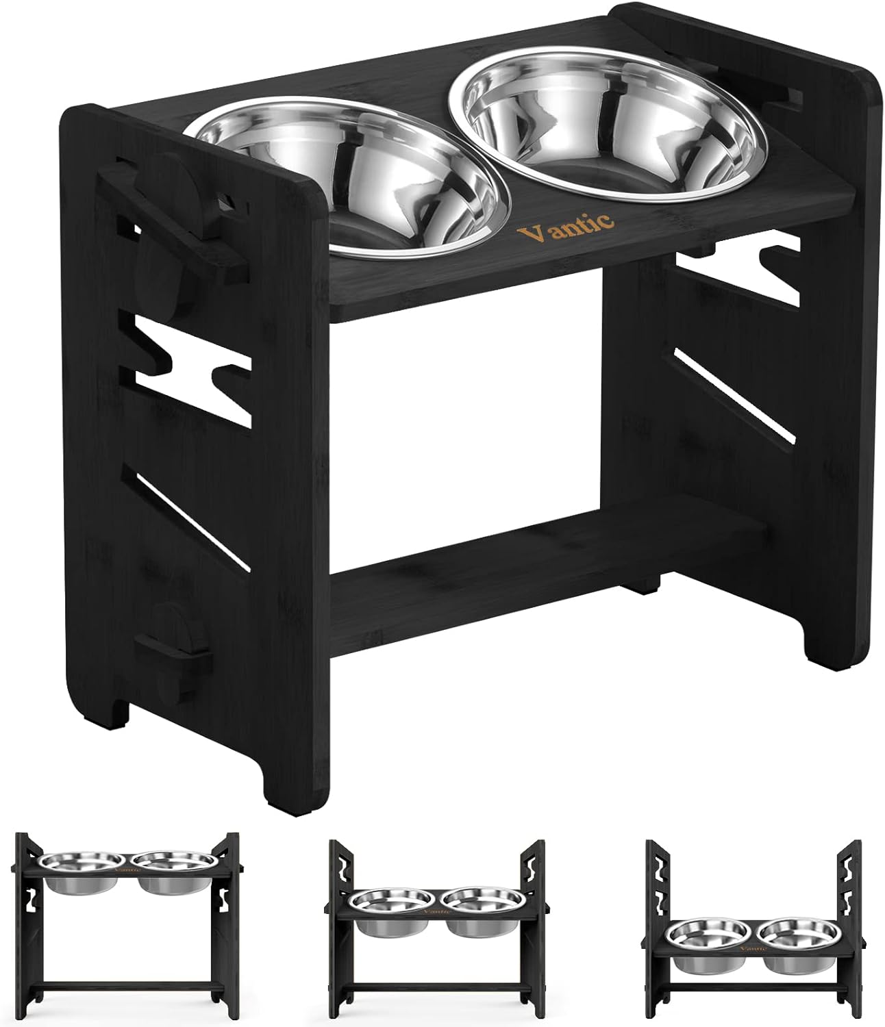 Vantic Elevated Dog Bowls, Adjustable Raised Dog Bowl Stand for Medium Sized Pet, Sturdy Bamboo Food Feeder with 2 Stainless Steel Dishes, Black