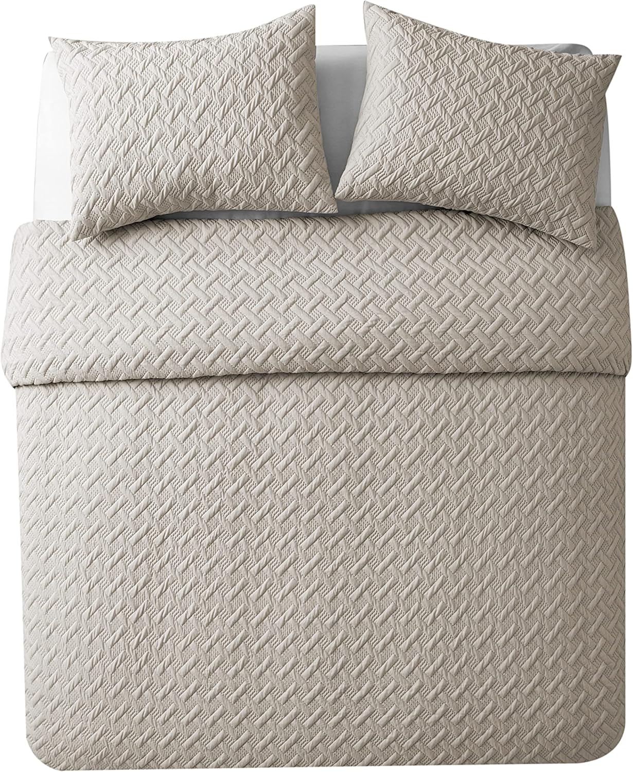 VCNY Home - King Comforter Set, Textured Basketweave Bedding with Matching Sham, Lightweight, Dorm Essentials (Nina Taupe, King)