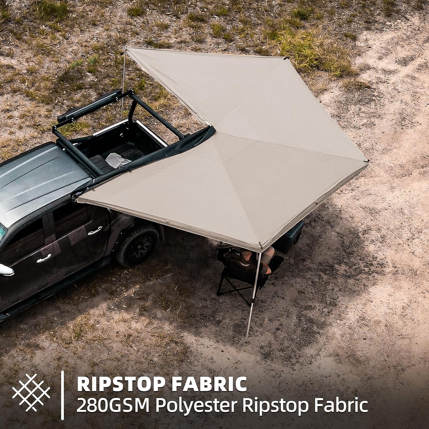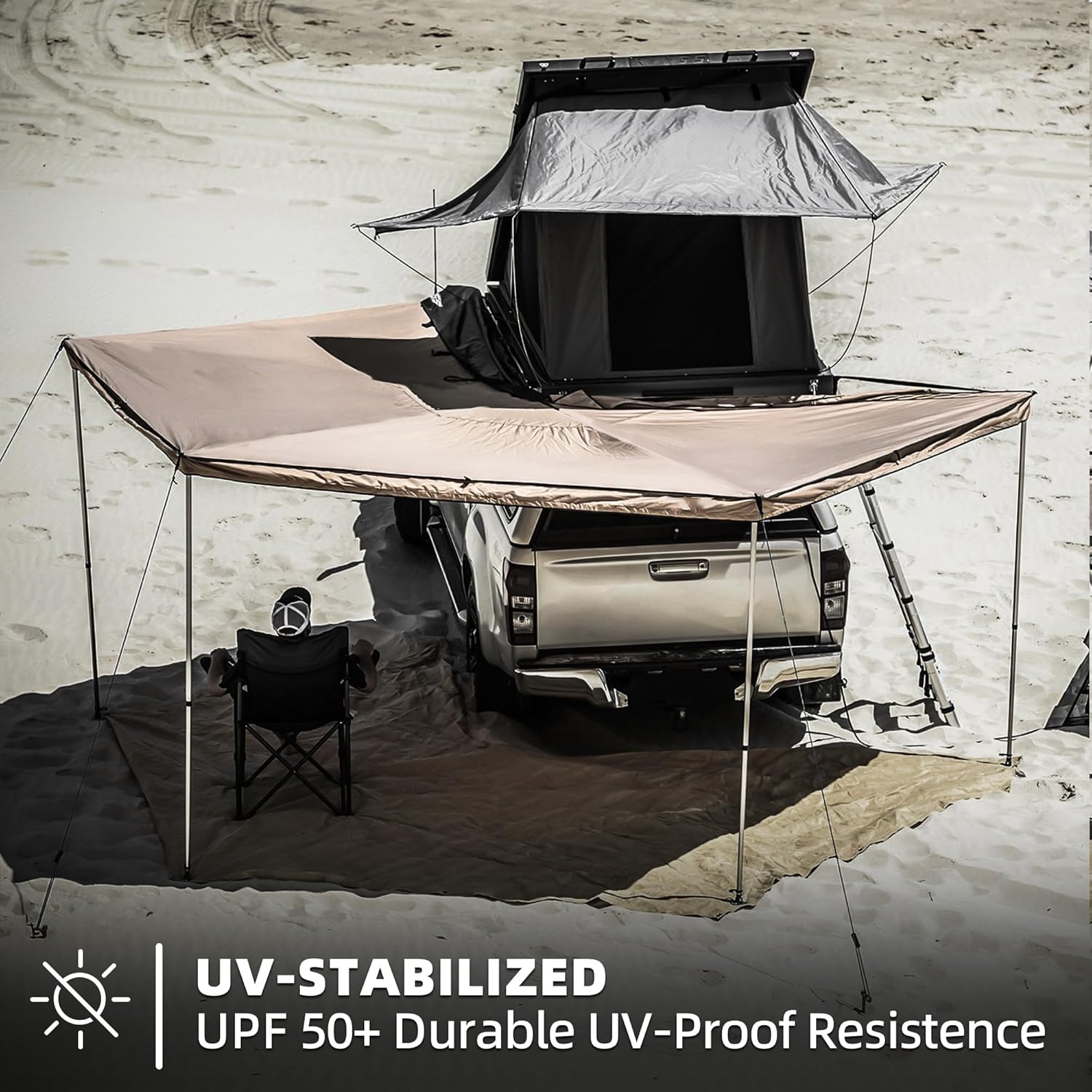 Vehicle Awning, 8.2ft x 270 Degree, Rooftop Pullout Ripstop UPF50 Side Awning, Reinforced Hinges & Poles for Jeep/SUV/Truck/Van