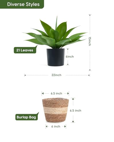 Agave With Seagrass Rattan Pot: Velener artificial agave plant is a stunning piece of decor that measures 15 x 15 x 6 inches (L x W x H).Weight: 3.3lbs. Black Pot: 6" W x 6" H. Rattan Pot: 6.5*6.5*6 inch (L x W x H), Pot Weight: 0.34lbs. Velener artificial agave with seagrass rattan pot is perfect to display on a bedroom, living room, bathroom, kitchen, table, office, balcony, and any other place to infuse your space with a refreshing and natural ambiance.