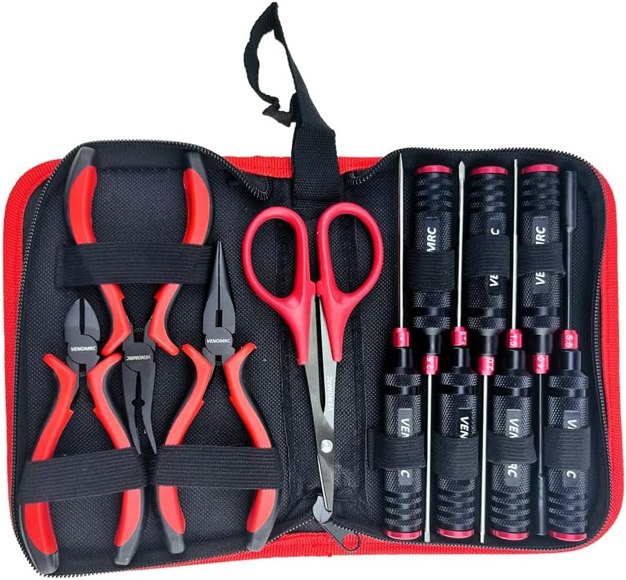 VENOMRC-11IN1 RC Tools Kits Box Set Screwdriver Pliers Hex Repair for Helicopter Multirotors/RC CAR,Remote Control Car/airplane(BLACK-RED)