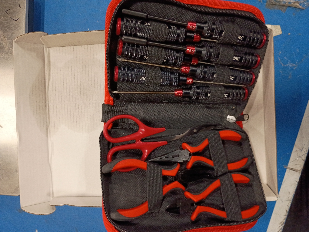Package include : 1 x 1.5mm Hex Screwdriver 1 x 2.0mm Hex Screwdriver 1 x 2.5mm Hex Screwdriver 1 x 4.0mm Box Spanner 1 x 5.5mm Box Spanner 1 x 2.8mm Screwdriver 1 x 2.8mm Slot Screwdriver 1 x Nipper pliers 1 x Diagonal Pliers 1 x Ball Link Pliers,1 x Body Trimming Scissors