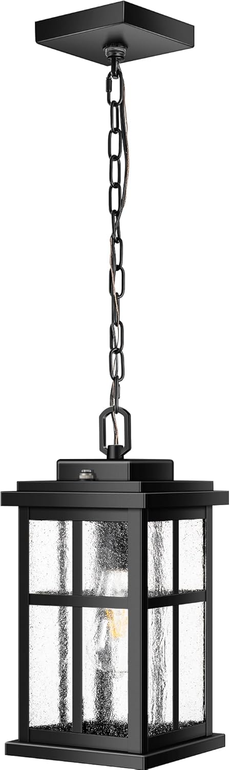 100% Aluminum & Waterproof & Tempered Seeded Glass: Our outdoor chandelier for porch is made of die-cast aluminum with a black matte finish. The dusk to dawn outdoor hanging lights for porch are waterproof, rust-proof, and weatherproof. Unlike other fragile glass panels, our outdoor hanging pendant light are made of high-strength tempered seeded glass, which is sturdy and durable. These exterior pendant lights for porch can provide lighting for outdoor and porch entrances, where it is most needed.