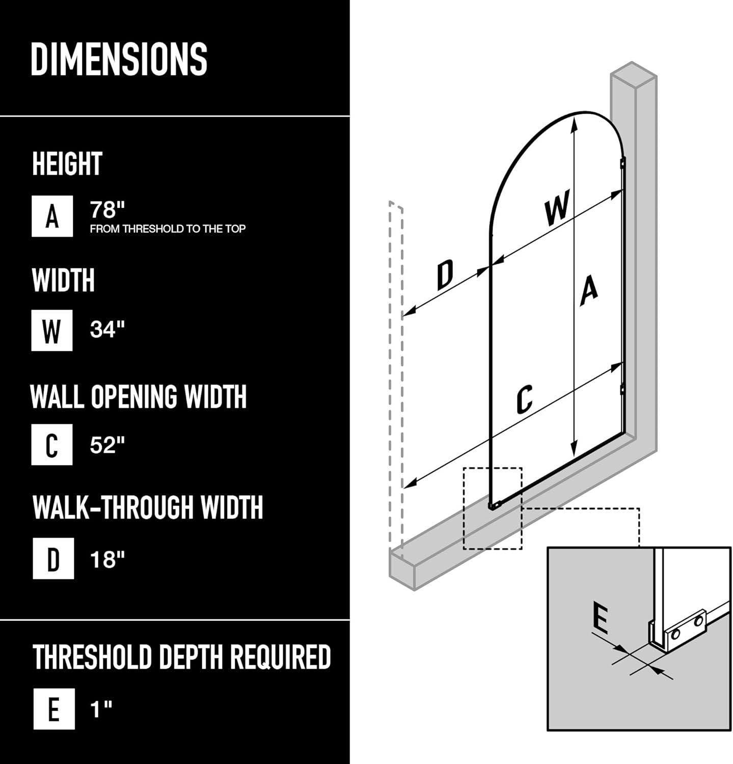 VIGO 34" W x 78" H Arden Frameless Fixed Shower Screen with Clear Tempered Glass, Door Handle and Stainless Steel Hardware in Stainless Steel-VG6094STCL3478