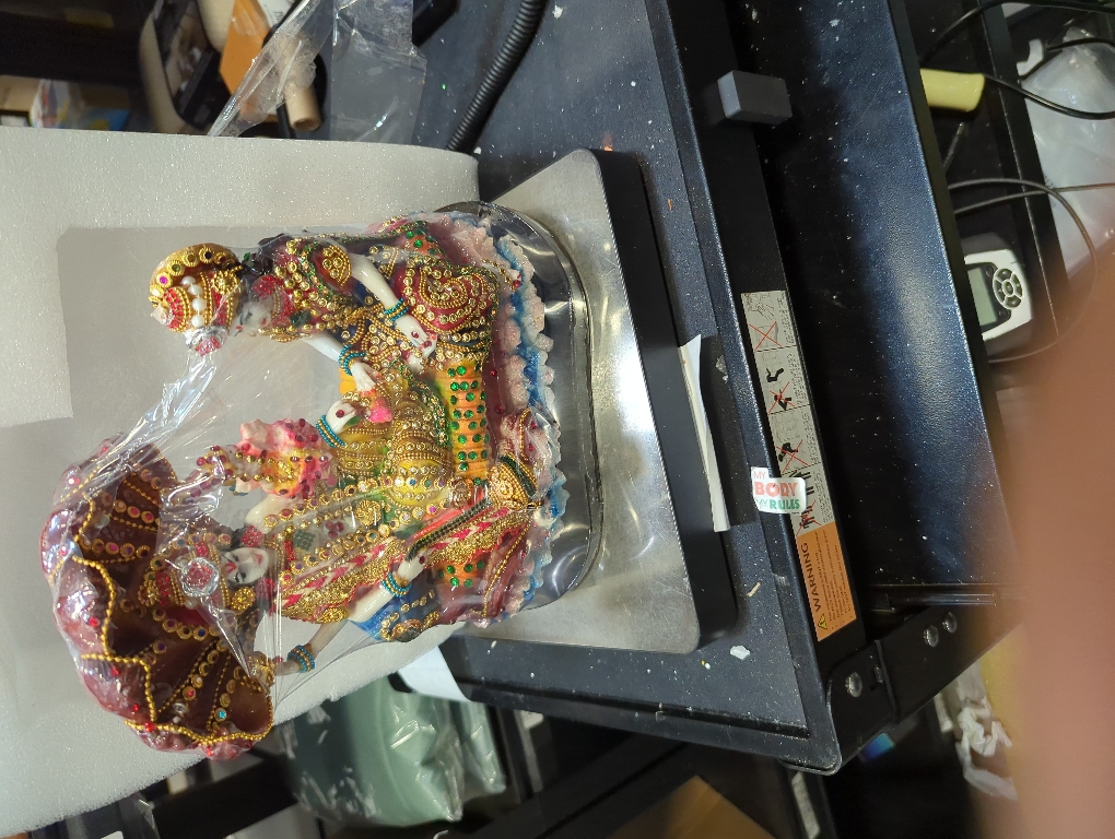 Please use dry cotton fabric to clean / dust to elongate the look and lustre of the murti.