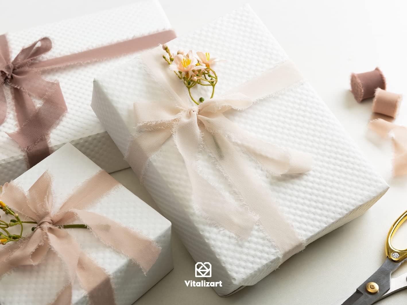 Ribbons are available in rust red, nude, ivory white, dusty blue, sage green, pink, black and more