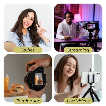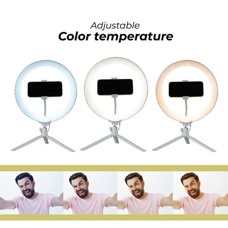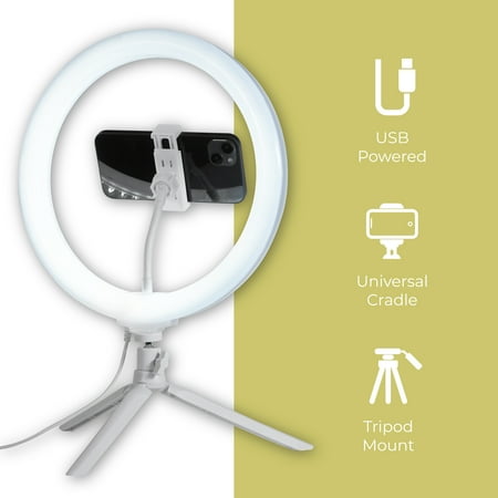 Includes Adjustable Smartphone Cradle 48 Ultra Bright LED Lights Voltage: USB 3.7-5V 3 Adjustable Color No Battery Needed Compatible with USB Charging Cables 7" Table Top Tripod 15 Adjustable Color Temperature Perfect for vlogging, live videos, video conferences, make up tutorials, and more