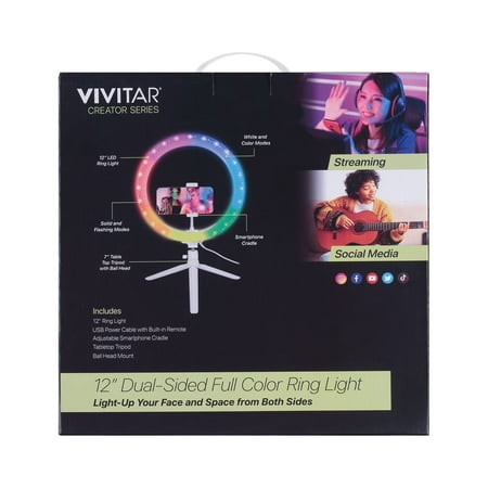 Vivitar 12" Full Color 3D Ring Light with Tripod and Adjustable Ball Head, Black