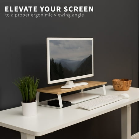 Solid Steel Footing: Elevates your screen, providing strong support and a comfortable, ergonomic viewing position. Total capacity is 44 lbs 24" Wooden Desktop: Smooth, comfortable, and trendy. Helps improve convenience and efficiency of computer usage, and can also serve as a riser for small TV's, keyboards, and laptops Desk Organizer: Adds more space for additional desk storage by getting computer displays out of the clutter Anti-Slip Silicone Padding: Provides solid footing and prevents scratches to any tabletop surface Easy Assembly: This product is ready to use in a matter of minutes! We provide all the hardware and instructions for headache-free installation