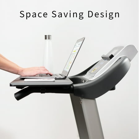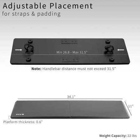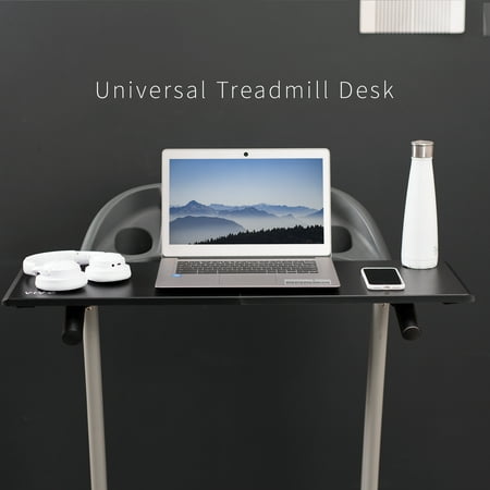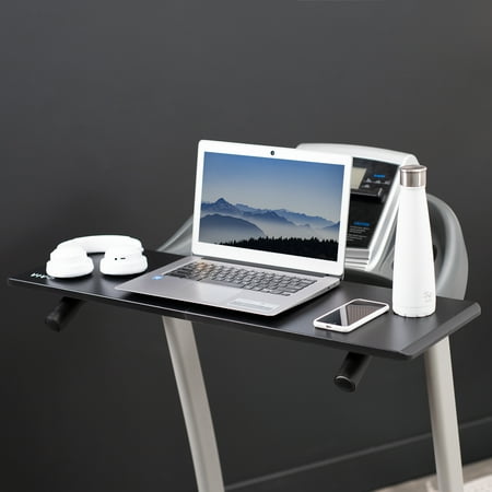 Universal Treadmill Desk - This sturdy 34.1” x 11” platform attaches to your treadmill (fits handlebar distances from 26.8" to 31.5"), creating your very own active workstation! Supporting your laptop, Macbook, iPad, tablet, and more, it holds your equipment safe and secure while you walk and get your work done. Sturdy 22 lbs Support - Sturdy particle board construction supports weights up to 22 lbs, transforming your exercise routine by letting you multitask in style with your new walking desk. The adjustable velcro straps are designed to fit the majority of treadmills on the market. Please Note: Not compatible with tilted/slanted handlebars. Protective Padding - Anti-slip rubber pads are provided to increase traction and protect your treadmill from scratches. Very Minimal Assembly - Simply attach the two platform parts, and this treadmill desk is ready to transform your work routine! Attaching the tray to your treadmill is a quick and simple process with the velcro straps.
