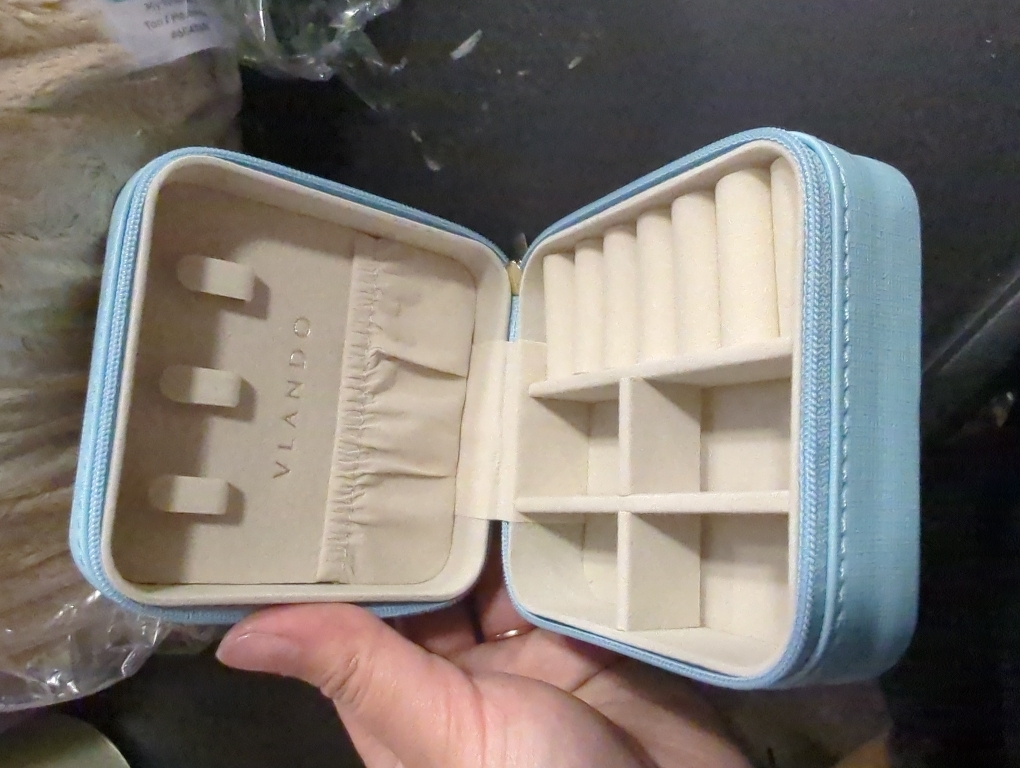 Great for carrying small jewelries (earrings, rings, necklace, bracelets, etc) when travel. 3 parts, raw of ring rolls and a elastic wall pocket. Also the best Valentine's Gift, Birthday Gift, Christmas Gift for Your Girls.