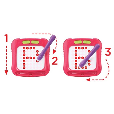 Writing pad with LED screen becomes writing pad with stylus; children can trace letters, numbers, and shapes with proper stroke order