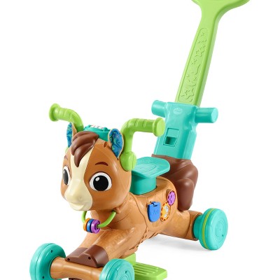 Only at Target! Grow-with-me pony goes from push walker to ride-on, scooter or bouncer; helps toddlers strengthen legs and arms as they play