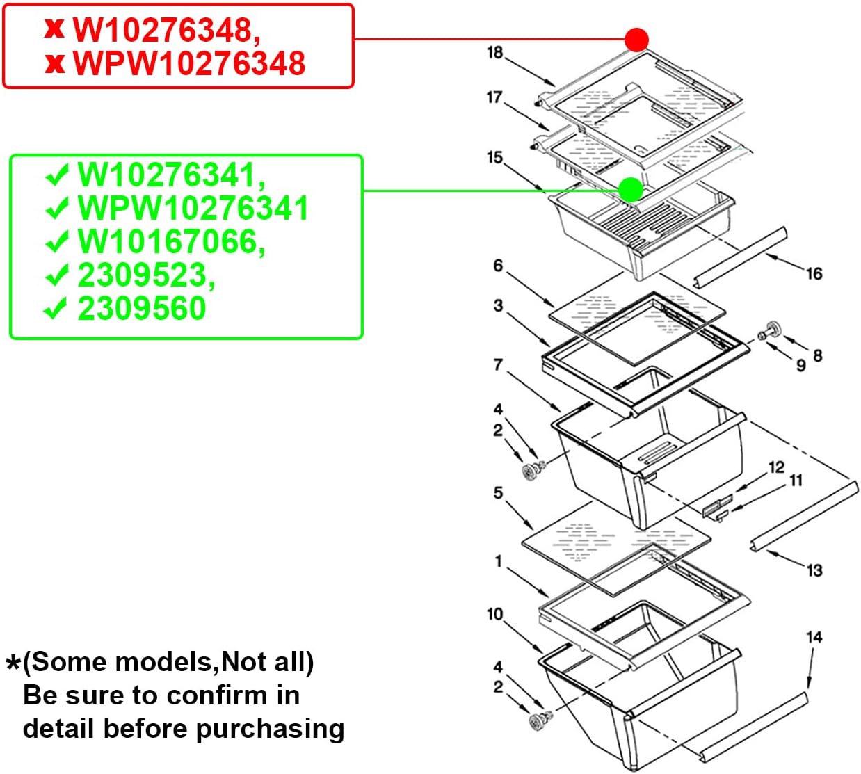 Part Number:W10276341, WPW10276341, W10167066, 2309523, 2309560, AP6018409, PS11751711, Glass Shelf Compatible with Kenmore, Whirlpool refrigerator parts shelf Only applicable to this part of the model, please confirm before purchasing