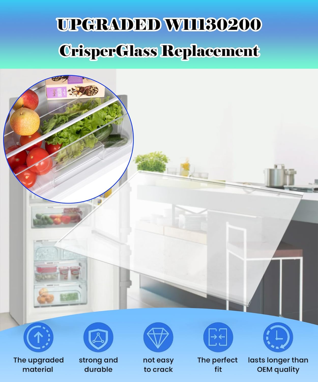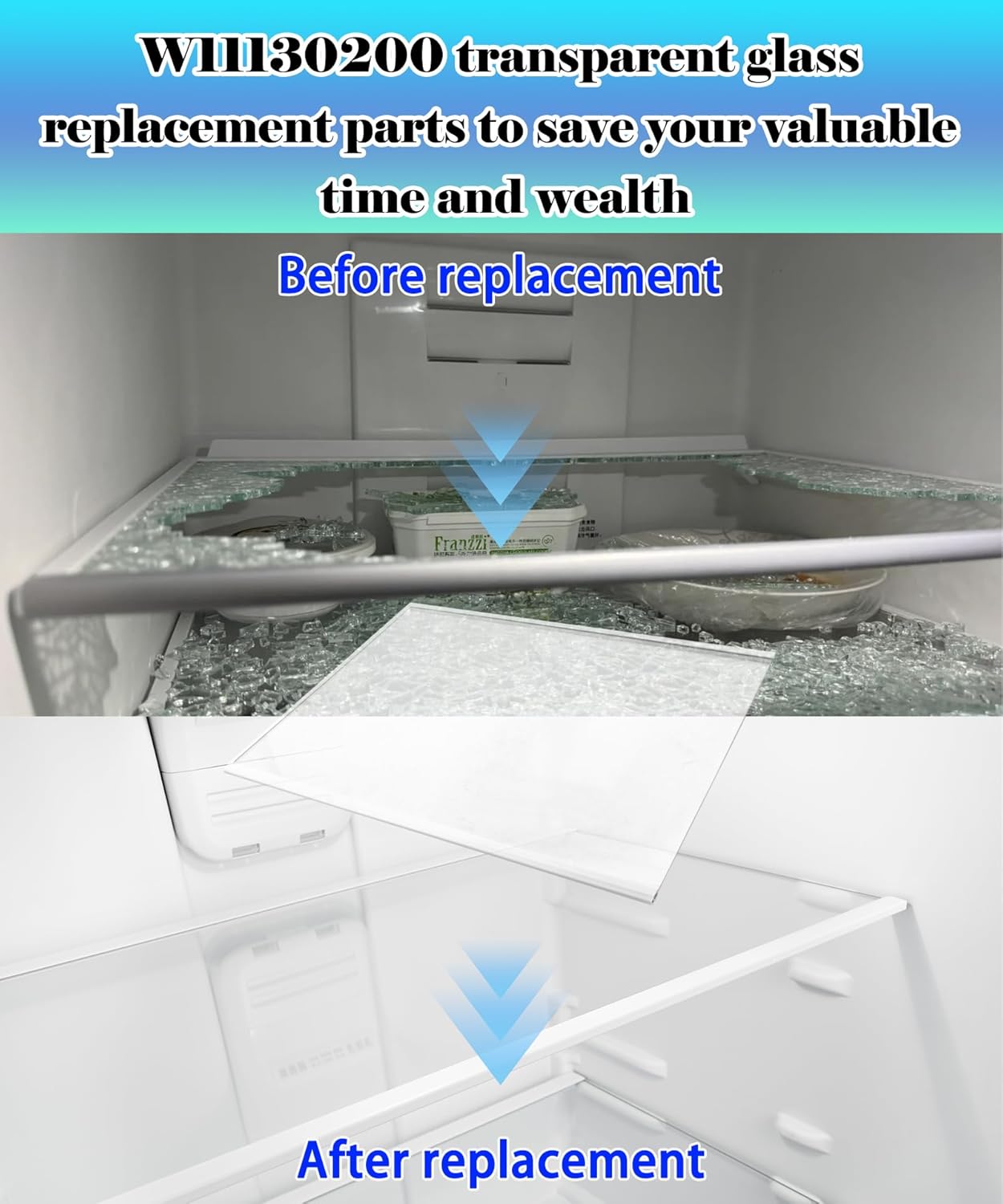 【Replace part number】:This W11130200- The installation position of the glass rack is located on the top layer of the preservation side. The W11130200 glass rack with dimensions of 17.5 inches x 13 inches can replace W10561292, W10773885, WPW10561291, EAP123475204545970, AP6262438, PS12347520