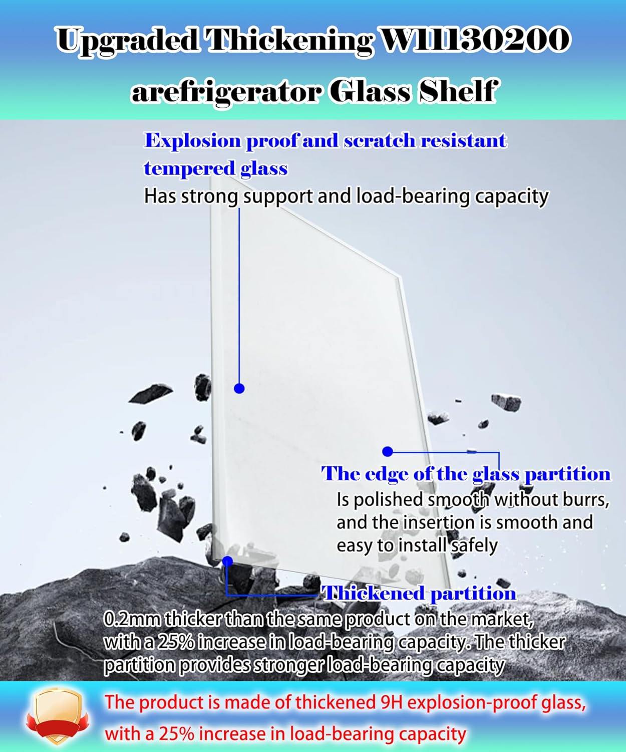 【Upgraded Thickening】:This product has been upgraded and thickened on the basis of using 9H hardness tempered glass, with a 25% increase in load-bearing capacity. At the same time, the rubber strips on both sides are made of environmentally friendly food grade rubber, You can store food with confidence