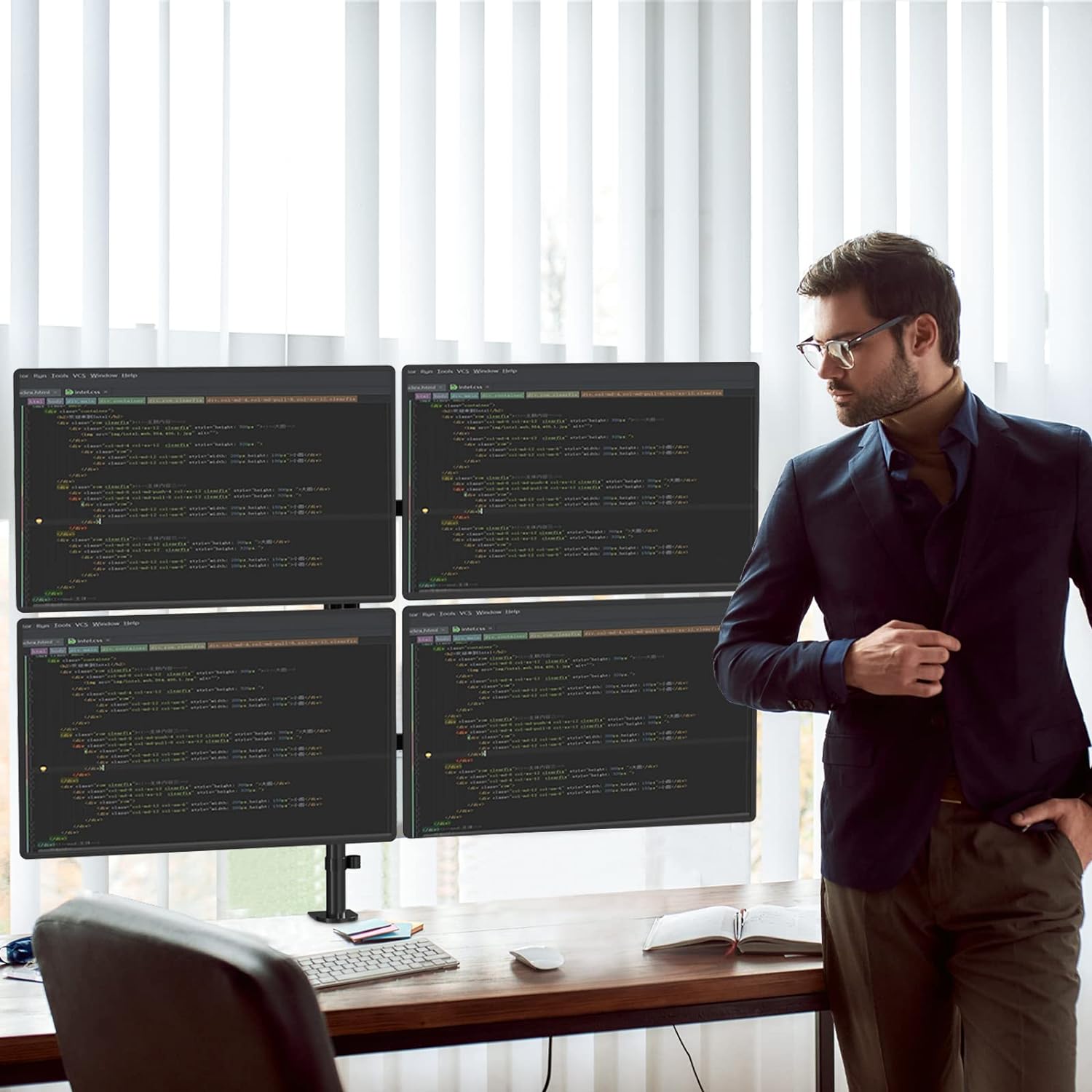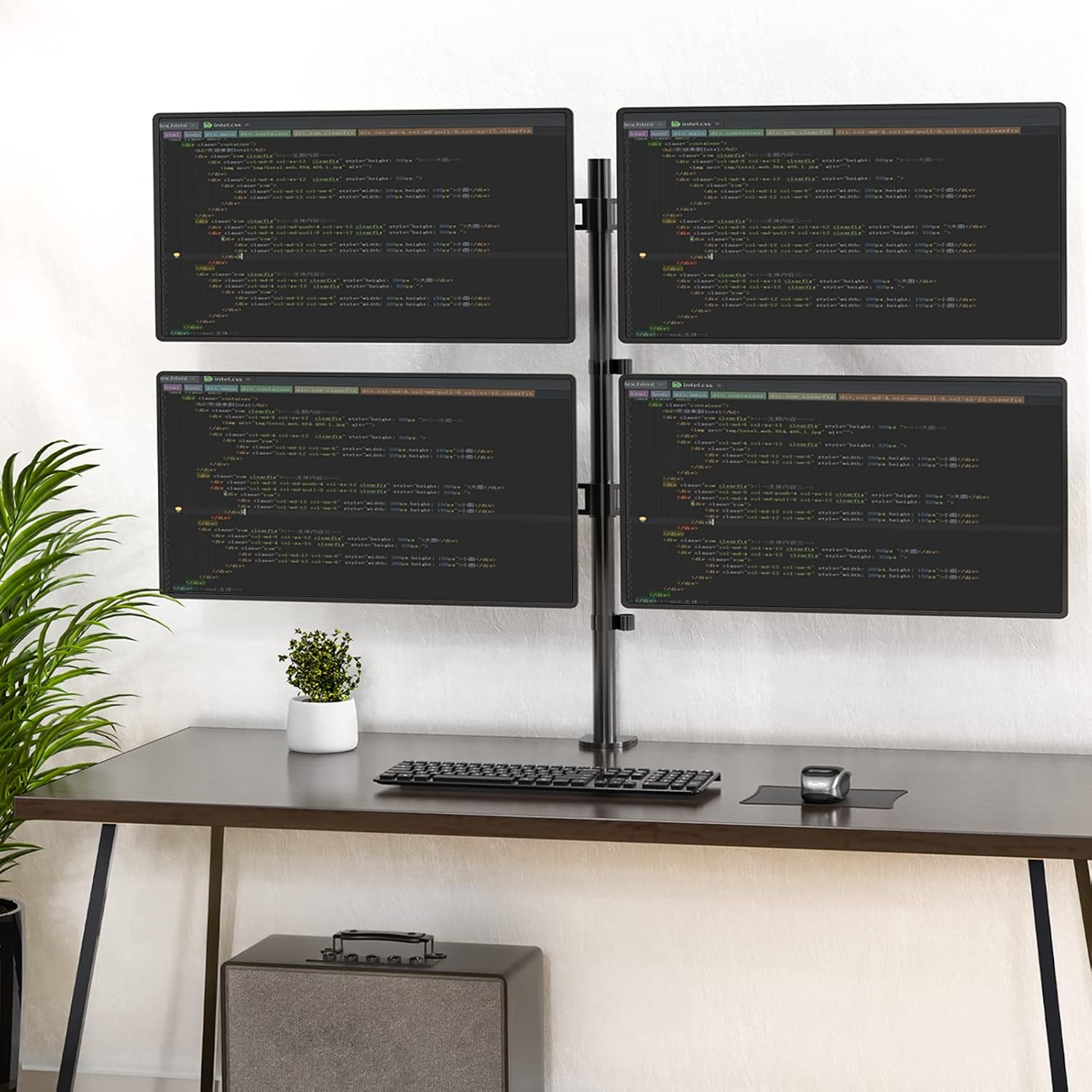 WALI Quad Monitor Desk Mount, 4 Monitor Stand Fits Heavy Duty Computer Screen up to 27 inch, Full Adjustable Arm Holds up to 22 lbs per Arm (M004), Black