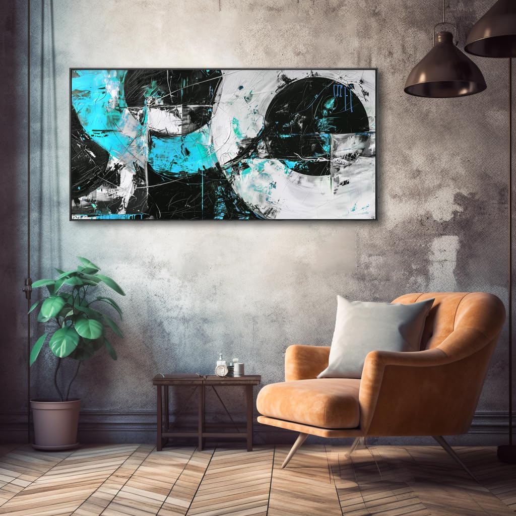 Wall Art Abstract Canvas Painting Black Blue Wall Decor Modern Artwork for Living Room Bedroom Dining Room Home Office Decor Large Framed Ready to Hang 24"x48"