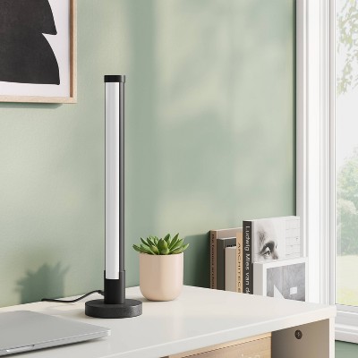 Illuminate your home in sleek style with the Wall Washer Table Lamp with Color Changing Lights and Remote from Room Essentials™. This black table lamp features a stick-like design with a round base for a modern look. It features color-changing lights with a dimmable setting to help you customize the lighting according to your needs. Simply use the included remote for operating the lamp.Room Essentials™: Everyday Value