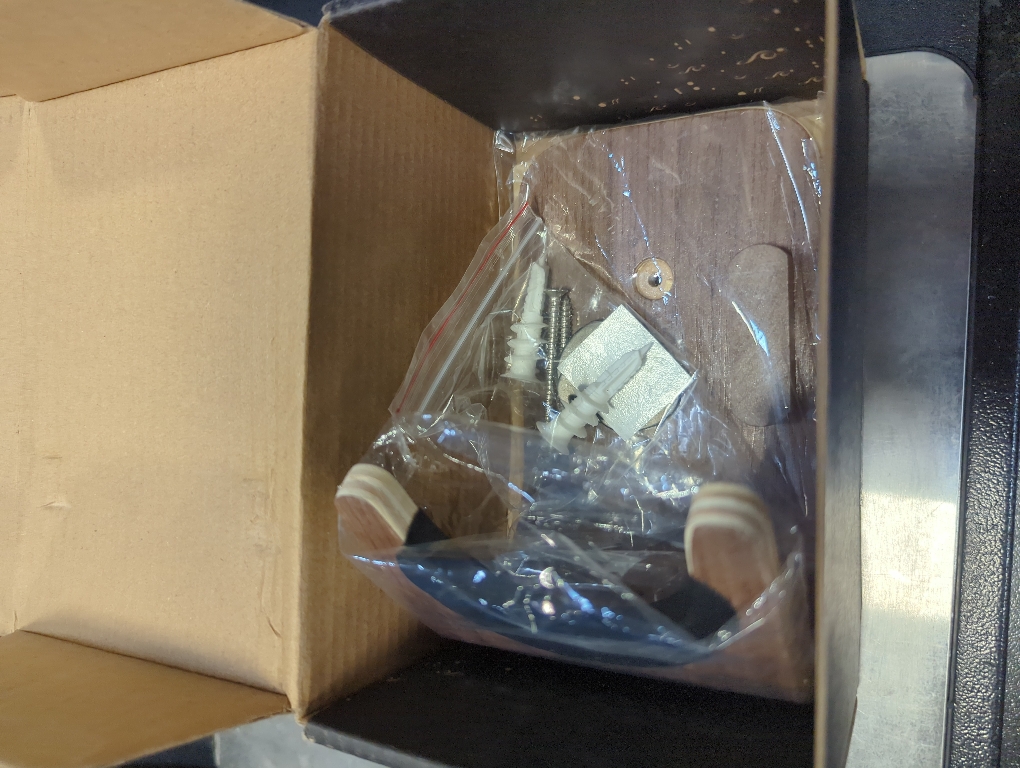 CONTAINS: 1x Walnut Plywood & Black Leather Hook with Capo Holder; 2 x Fixing Screws & Heavy Duty Wall Plug Anchors; 2 x Walnut coloured "stickers" to camouflage the screw heads; 2 x Wishwood Music Guitar Picks; 1 x Gift Box; NOTE: Capo NOT included
