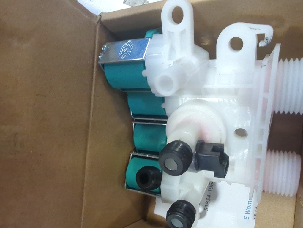 [Package Includes] This washer water inlet valve has 3 Push-On Valves, 2 Threaded Valves(ports that are connected to hot and cold water), 4 Solenoids, with Blue & Red Mesh Inserts to connect to the rear hot and cold water hoses respectively.