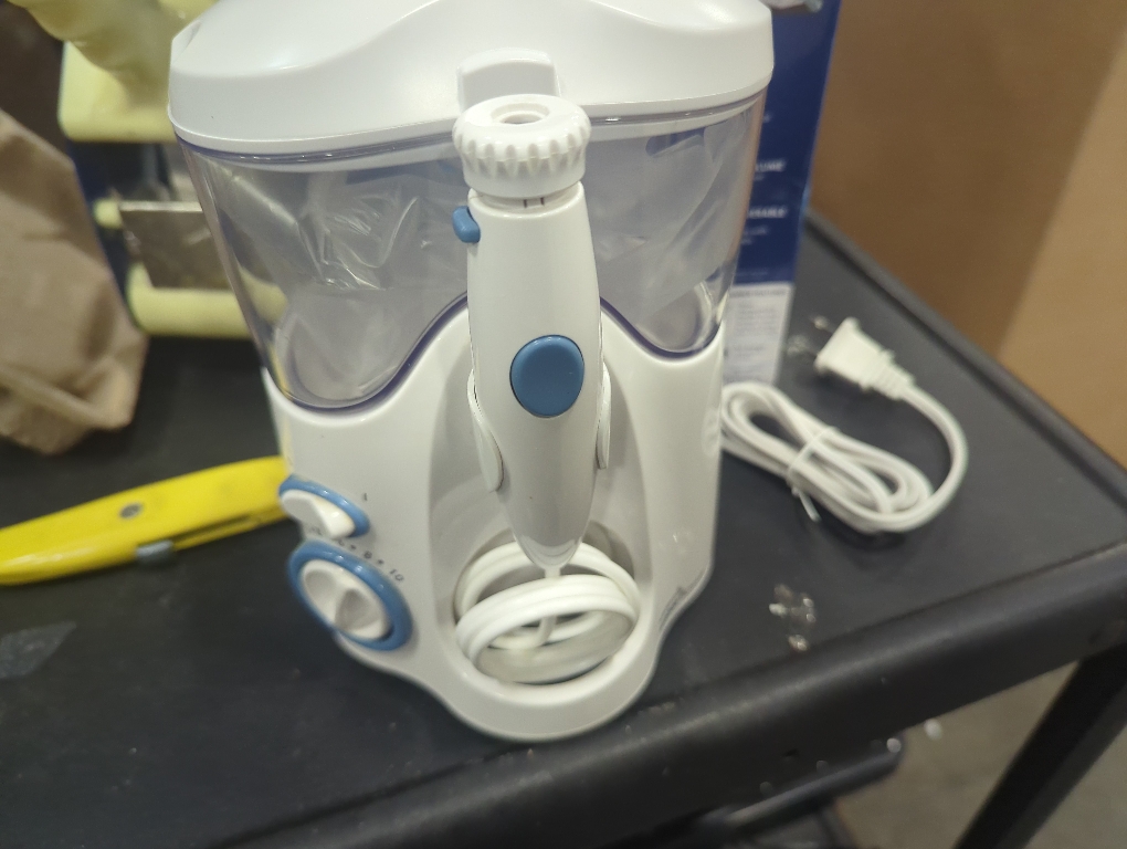 NEEDS CLEANING The Waterpik ultra water flosser removes up to 99.9% of plaque from treated areas as it gently massages the gums to improve overall oral health. Clinically proven to be twice as effective as traditional string floss for improving gum health. Proven in laboratory tests to remove 99.9% of plaque from treated areas with a 3-second application. Clinically proven 3 times as effective as string floss for cleaning around braces with the orthodontic tip. Removes bacteria deep between teeth and below the gum line where brushing and traditional flossing can't reach. Massages and stimulates gums to improve circulation and keep your gums strong and healthy. Great for people with implants, crowns, bridges and veneers. Leaves your mouth feeling incredibly fresh and clean. 6 unique tips. Advanced pressure control system with 10 settings. 5 to 90 psi. Reservoir capacity of 90 seconds. Pause button on handle. Can be used with water or your favorite mouthwash. Smaller and quieter than previous models. Covered reservoir with built-in tip storage. Waterpik Ultra Water Flosser includes: 1 Classic jet tip, 1 Plaque Seeker™ tip, 1 Orthodontic tip, 1 Pik Pocket™ tip, 1 Toothbrush tip. Base Material: 100% Plastic. Country of Origin: Imported.