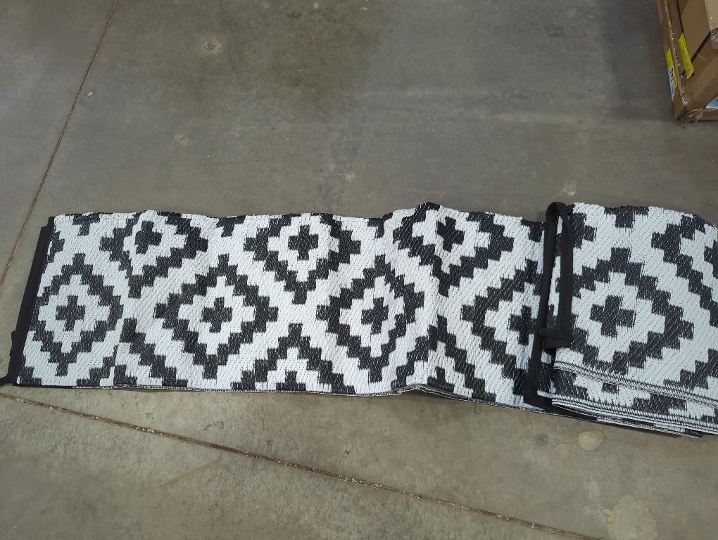 FADE-RESISTANT & UV PROTECTED FOR OUTDOOR USE: Designed to outlast the elements, this outdoor rug waterproof is coated for UV resistance, preserving its bold black and white tones even under strong sun. Reinforced edges prevent fraying, ensuring your outdoor patio rug stays sleek and intact season after season.