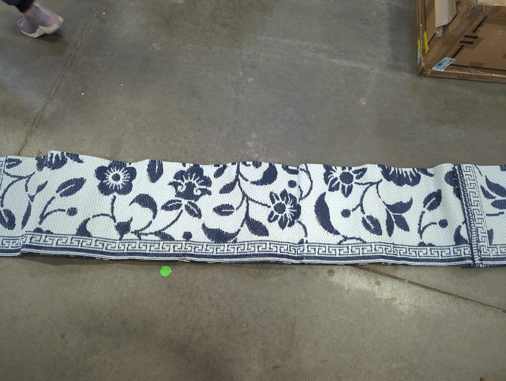 Waterproof Outdoor Rug Medium Outdoor Plastic Straw Rug with Flower Pattern, Reversible RV Mat for Patio, Camping, Balcony, Deck, Backyard, Navy & White